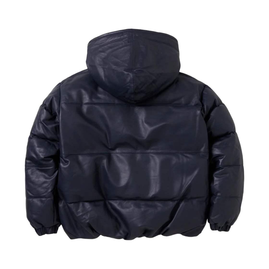 네이버후드 x 쇼트 레더 후드 다운 자켓 네이비