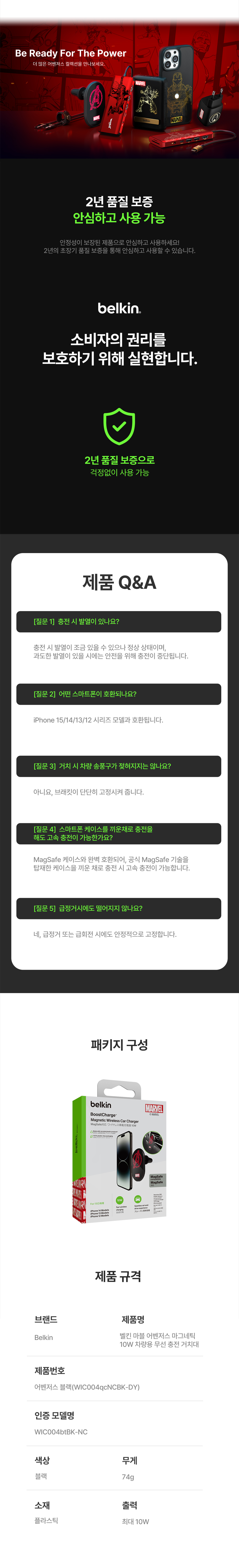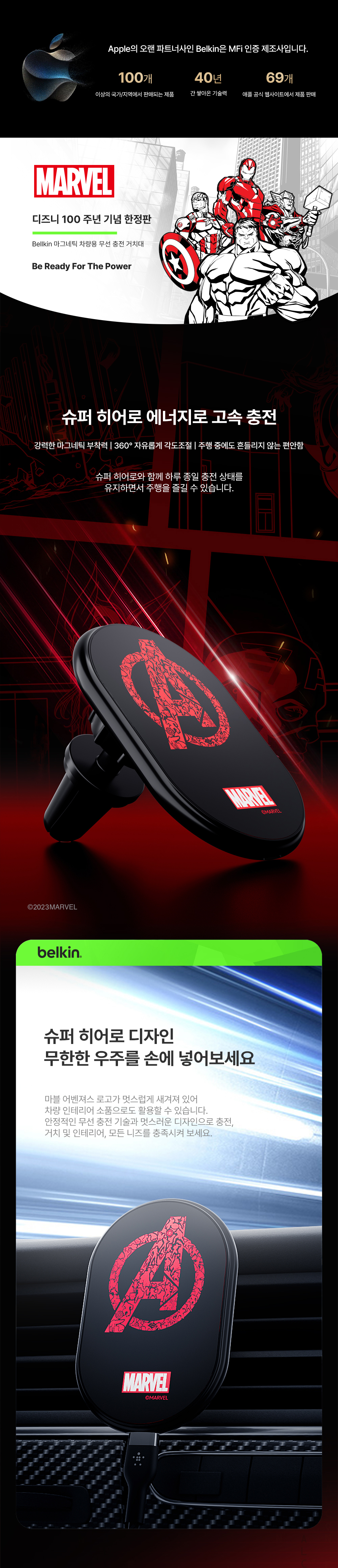 벨킨 마블 어벤저스 캐릭터 맥세이프 마그네틱 10W 차량용 무선 충전 거치대