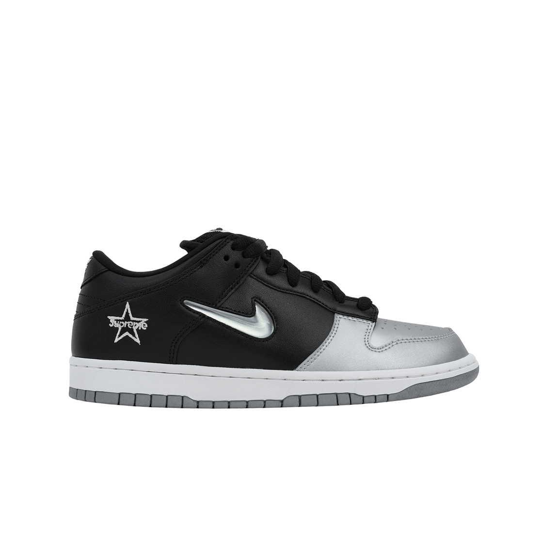 Nike x Supreme SB Dunk Low Jewel Swoosh Silver