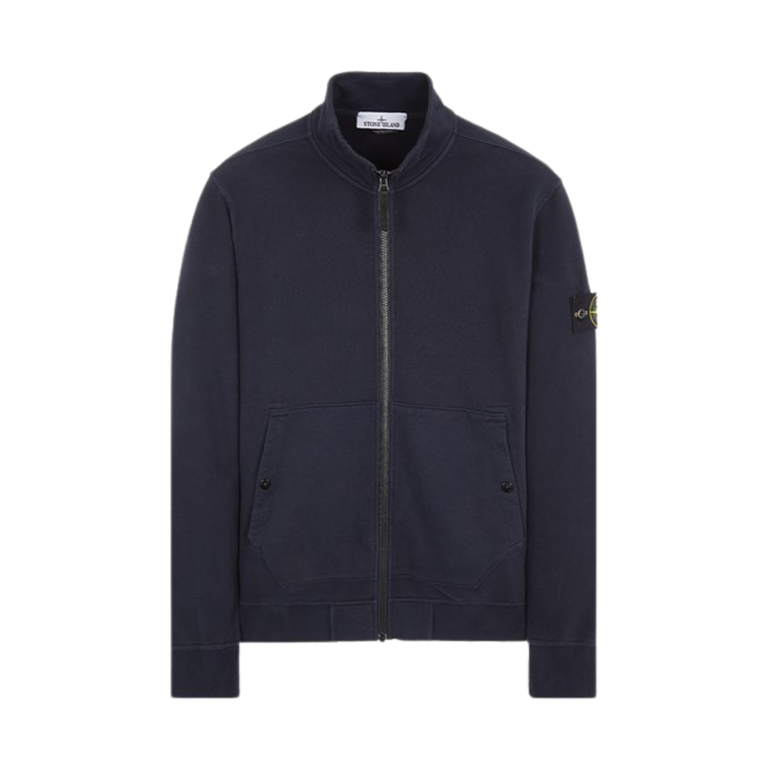 Stone Island 62820 Brushed Cotton Fleece Garment Dyed Full Zip Up Sweatshirt Navy Blue - 23FW