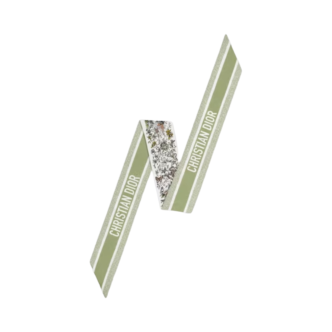 (W) Dior Butterfly Around The World Mitzah Scarf Silk Twill White Pastel Peyote Green