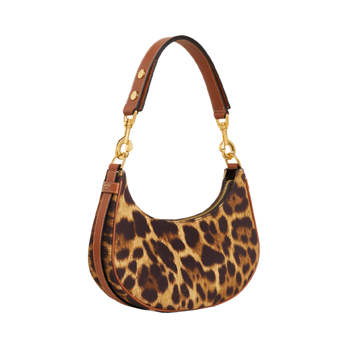 Celine Medium Ava Strap Bag in Textile with Leopard Print Natural Tan