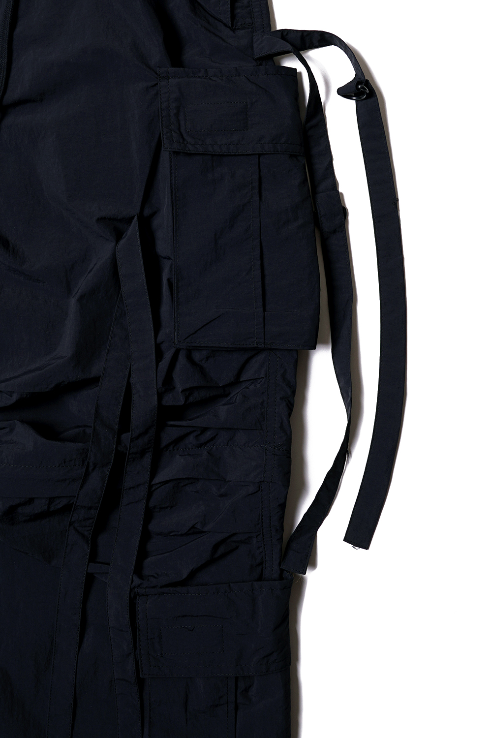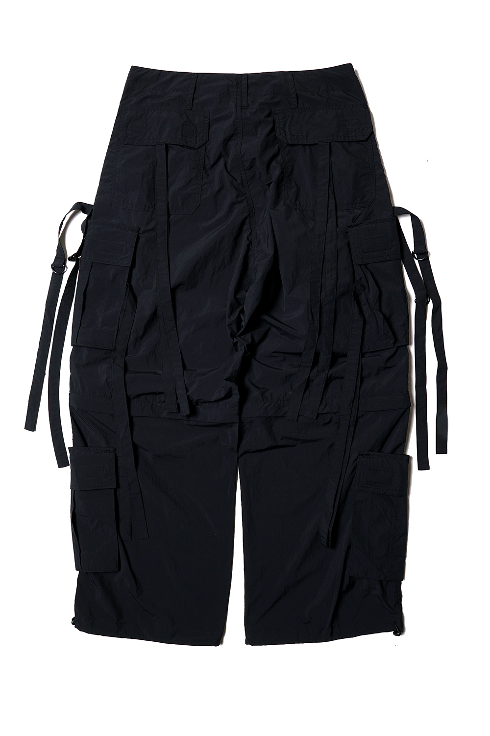 Houston Japan 10047 Nylon UK Techno Pants - Black 현재 입수하기 어려운 영국군의 테크노 팬츠를 베이스로 제작된 아이템입니다. 쇼츠로도 활용 가능한 2way 제품으로, 무수히 늘어진 스트랩과 와일드한 실루엣이 특징입니다. 고밀도 나일론 소재로 제작되었으며, 허리와 밑단은 드로우 코드로 조절 가능합니다. 8개의 플랩포켓은 벨크로 사양으로 개폐에 용이합니다. 무릎 부분에는 2개의 턱이 있어서 움직임에 자유로우며, 지퍼를 사용하여 팬츠에서 쇼츠로도 착용가능하여, 다양한 연출이 가능한 아이템입니다.