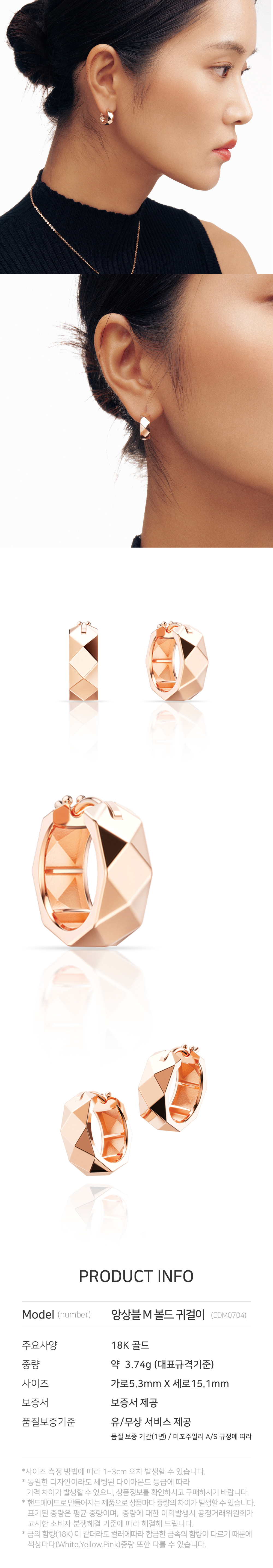 해당 상품 구입시 제작 및 출고에 영업일 기준 최대 14일이 소요됩니다. 언제나, 어디서나 동일한 가치를 인정받는 최상의 스톤만을 셀렉합니다. 미꼬의 스톤 전문가는 뉴욕, 홍콩, 인도, 일본, 벨기에 등 세계 각지에서 매일 소통하며 다이아몬드를 비롯한 스톤을 선택합니다. 3부이상 : GIA 다이아몬드 Only. 3부미만 : G/VS2/VG(별도표기 없을 시 기본등급) H/SI2/VG(일부 온라인 익스클루시브 제품, 제품명에 SI2 표기) 미꼬는 100% 핸드메이드로 외주공정이 아닌 독자적인 장인들의 공정운영으로 고객 한 분 만을 위한 주얼리입니다. 재고상품을 판매하는 것이 아닌 최상의 퀄리티를 가진 오더메이드 파인주얼리를 재공하고자하는 미꼬의 브랜드 규정입니다. 크림에서 판매되는 미꼬의 모든 주얼리는 18k Gold로 제작된 핸드메이드 파인주얼리입니다.