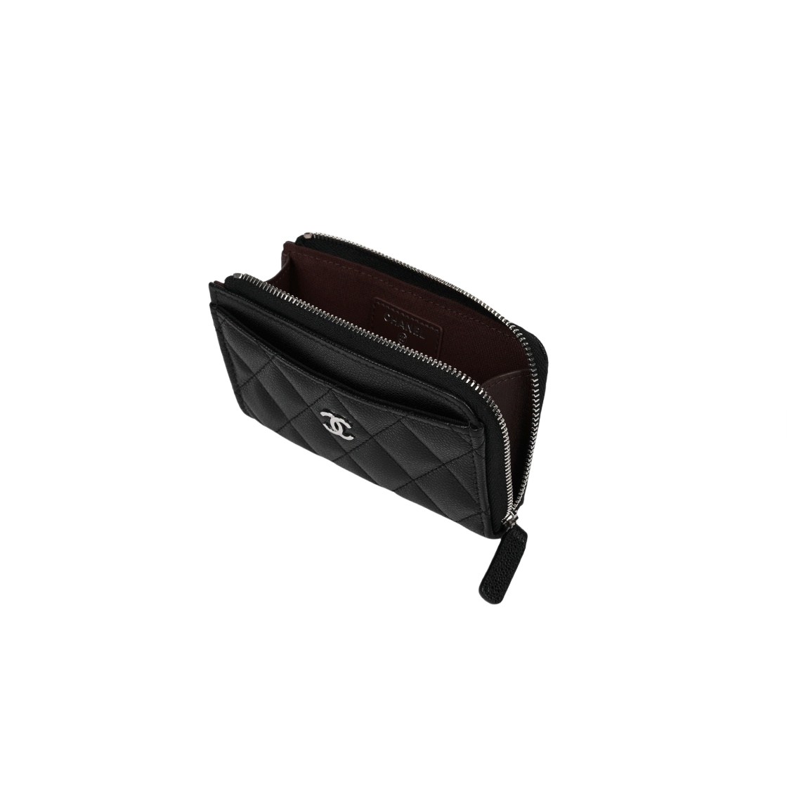 샤넬 카드 홀더 샤이니 그레인드 카프스킨 & 실버 메탈 블랙