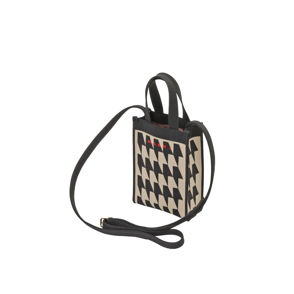 Marni Nano Shopping Bag in Houndstooth Jacquard Silkwhite Black
