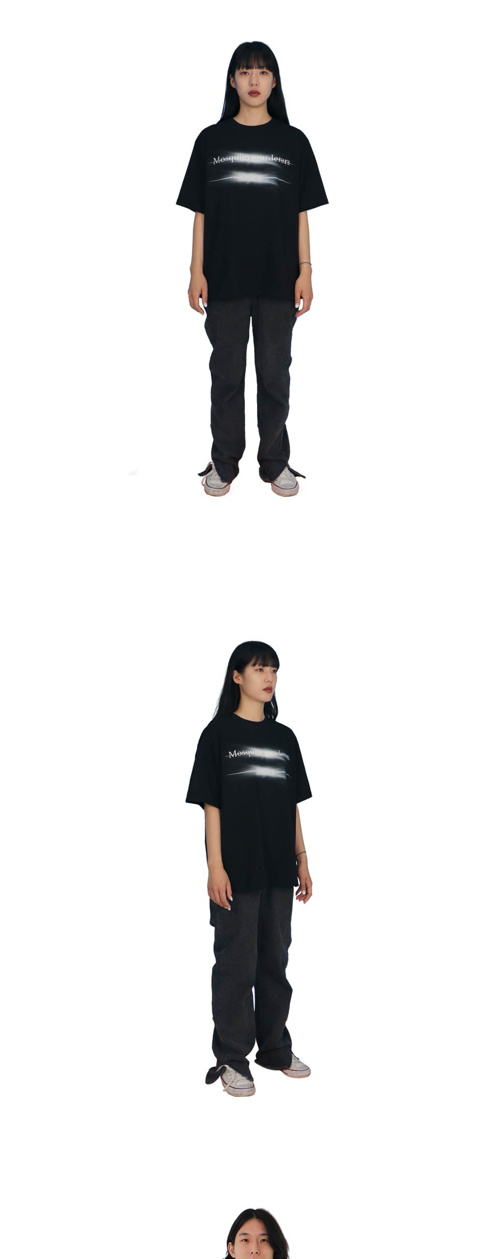 168cm(5’5”) / 52kg(114lb) WEARS SIZE 1 182cm(6’0”) / 76kg(167lb) WEARS SIZE 3 - 목 늘어남을 방지하기 위한 넥라인 해리처리 - 갈라삼봉 봉제법으로 내구성이 우수하며 완성도 높은 실루엣 - 비침없이 부드러우며 구김에 강한 100% 면 텍스처 - 덤블워싱, 텐타 가공을 거쳐 오랜시간 착용 및 세탁시에도 옷의 변형을 최소화 - 벗겨지거나 바래지 않는 선명한 프린팅 Mosquito murderers의 모든 의류는 한땀 한땀 사람의 손으로 탄생됩니다. 세탁시 케어라벨을 확인해 주시고, 프린팅의 손상을 최소화 하기 위해 옷을 뒤집어 세탁하는 것을 권장합니다.