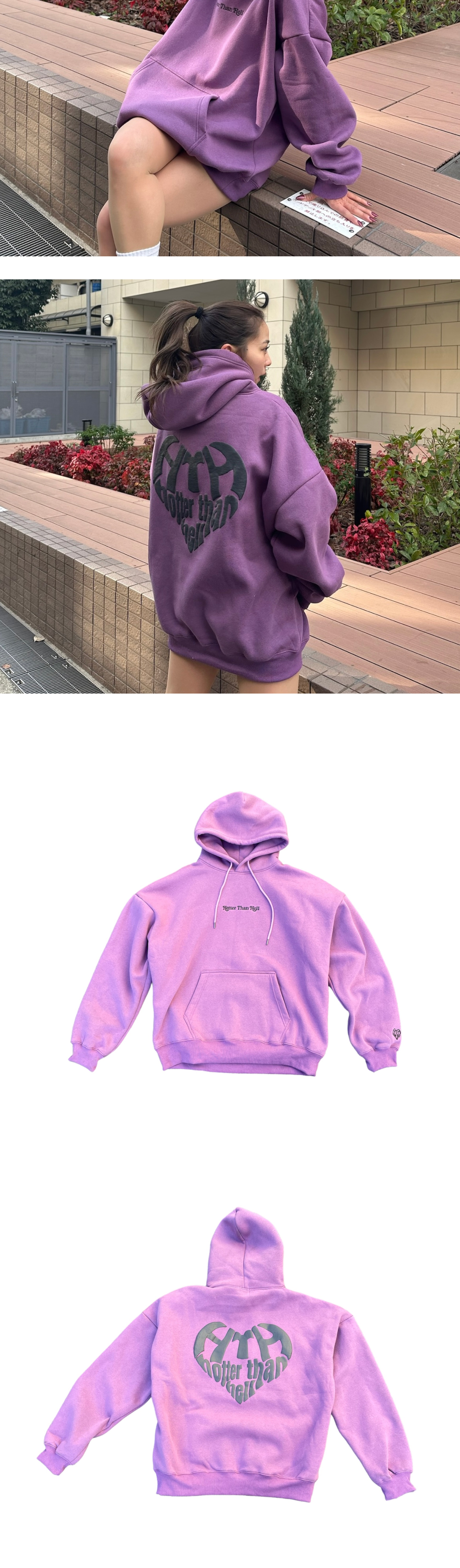 에이치티에이치 하트 로고 후드 퍼플