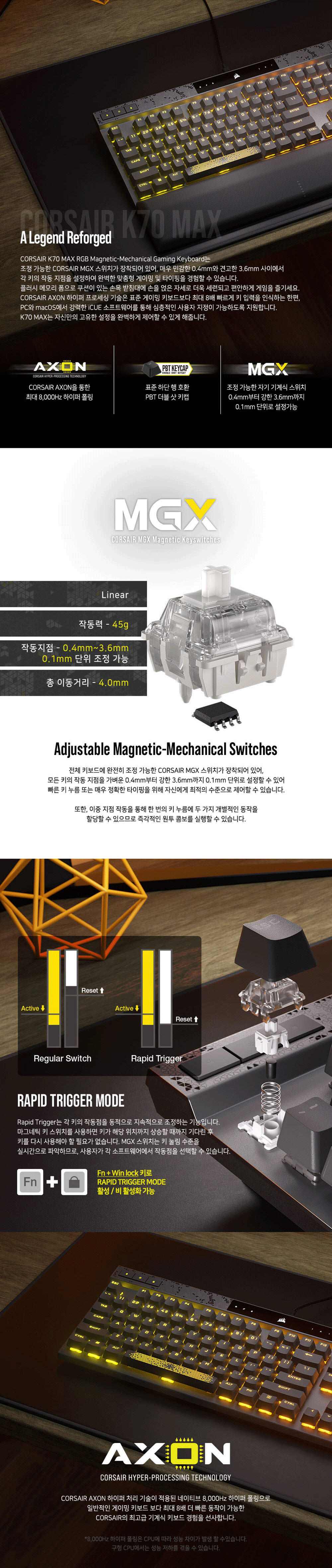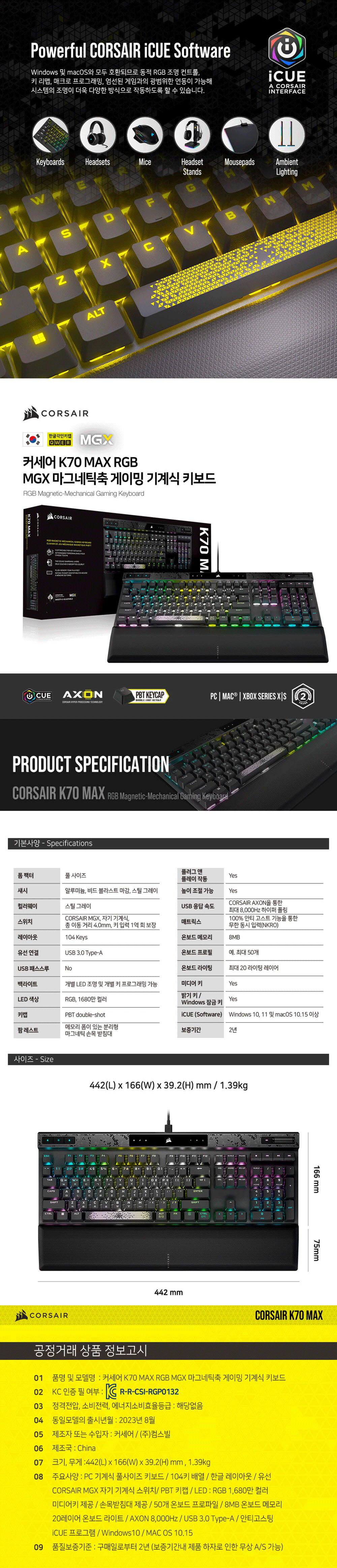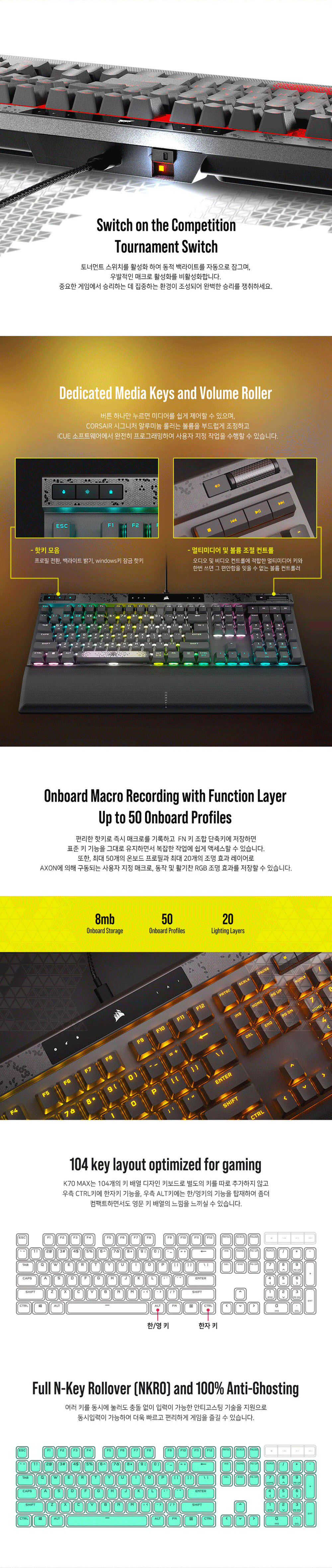 커세어 K70 MAX RGB MGX 기계식 게이밍 키보드 마그네틱축