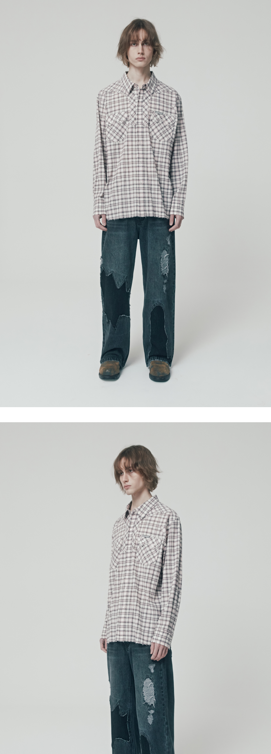 더바이닐하우스 웨스턴 체크 셔츠 핑크