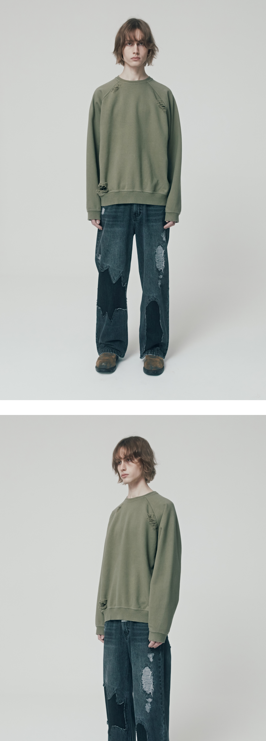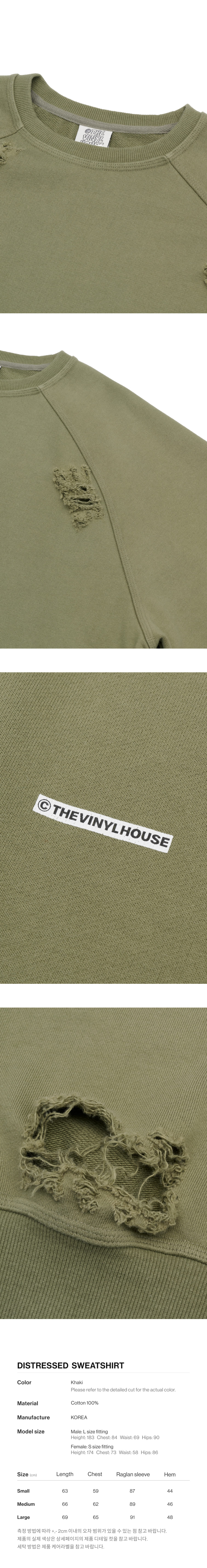 더바이닐하우스 디스트레스드 스웨트셔츠 카키