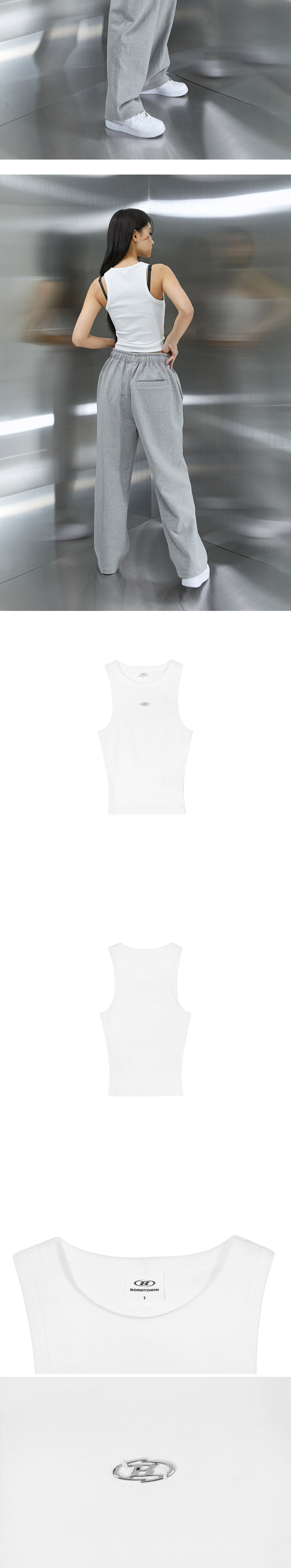 본투윈 B 펜던트 리브드 세미 크롭 슬리브리스 화이트