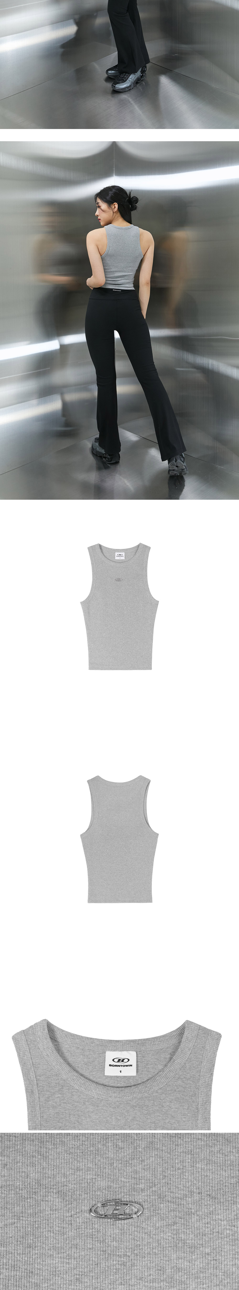 본투윈 B 펜던트 리브드 세미 크롭 슬리브리스 멜란지그레이