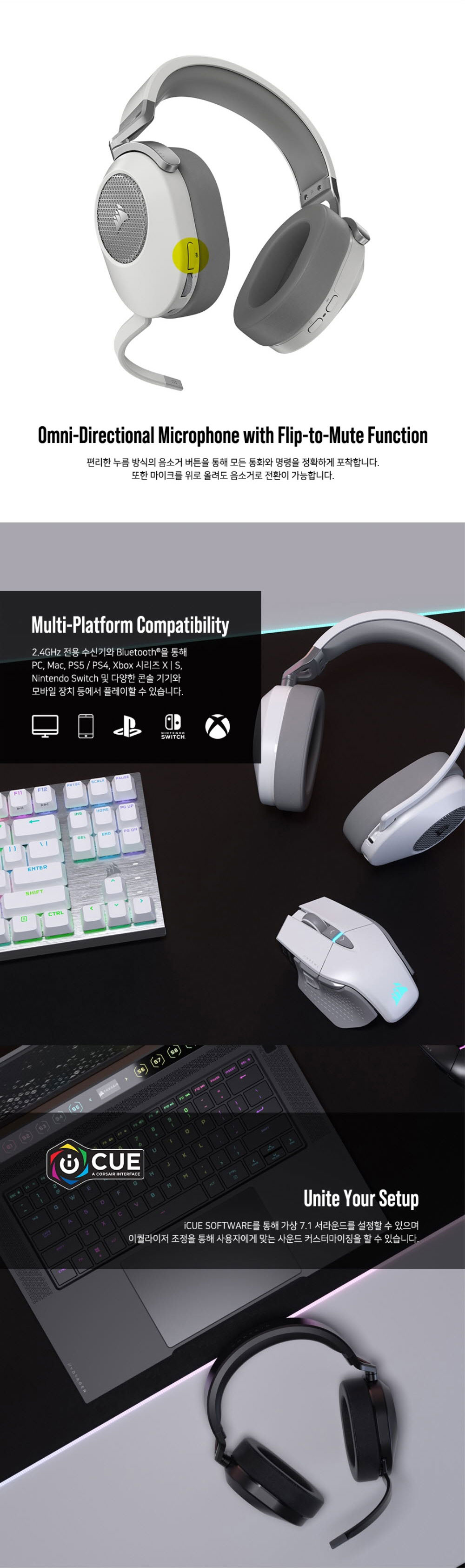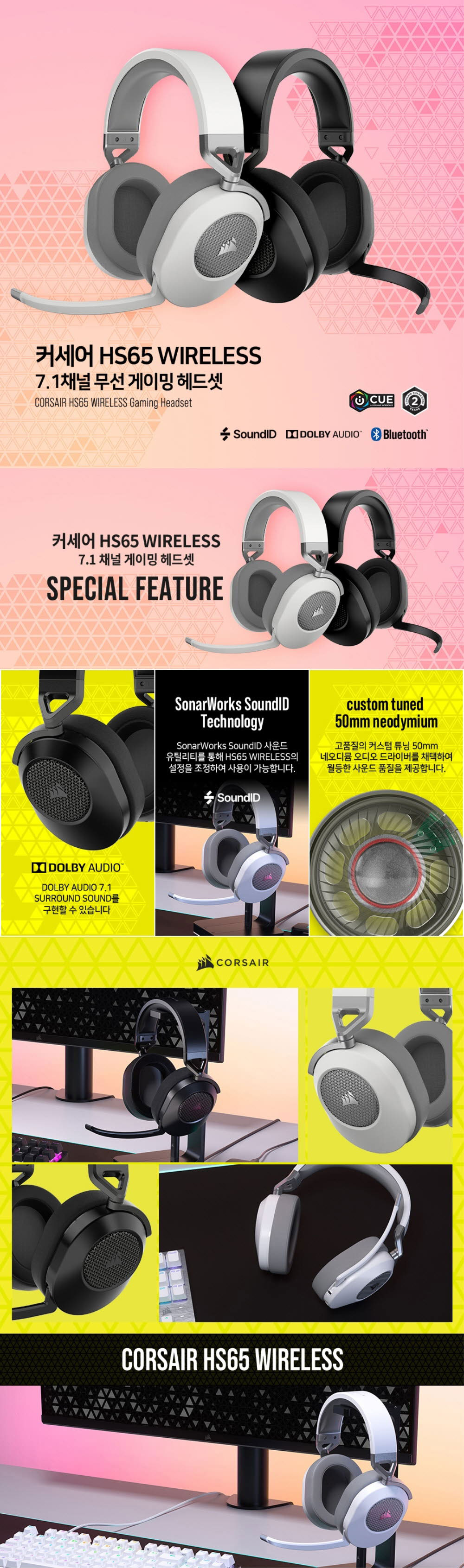 커세어 HS65 무선 7.1 채널 게이밍 헤드셋 블랙