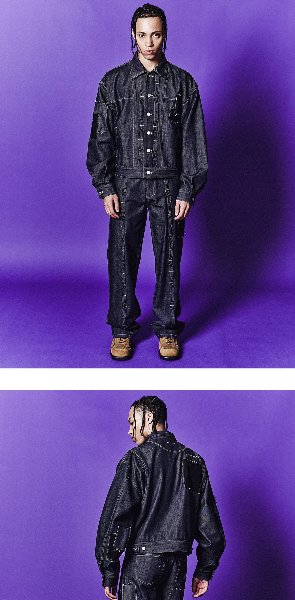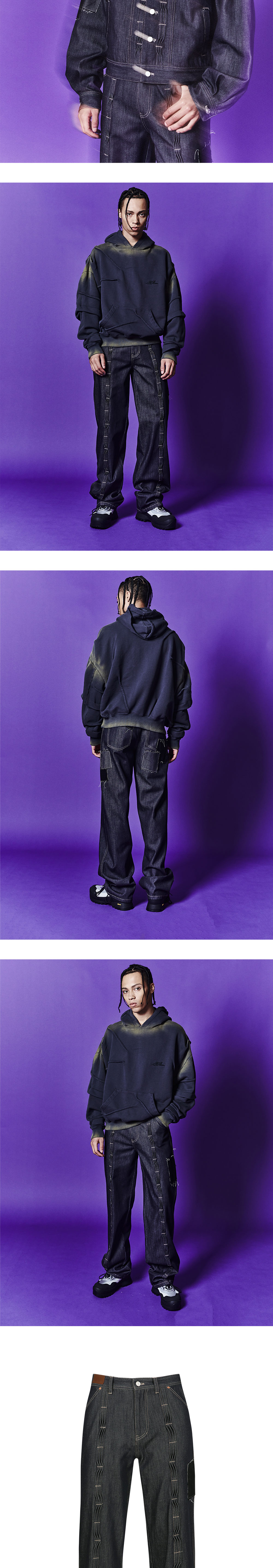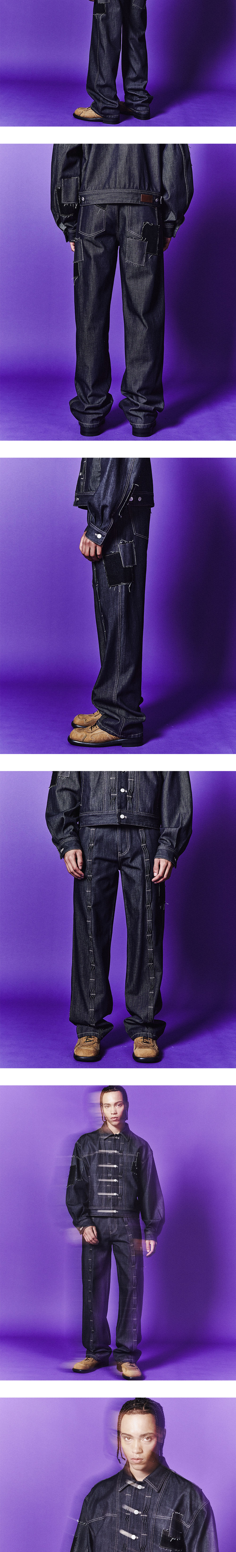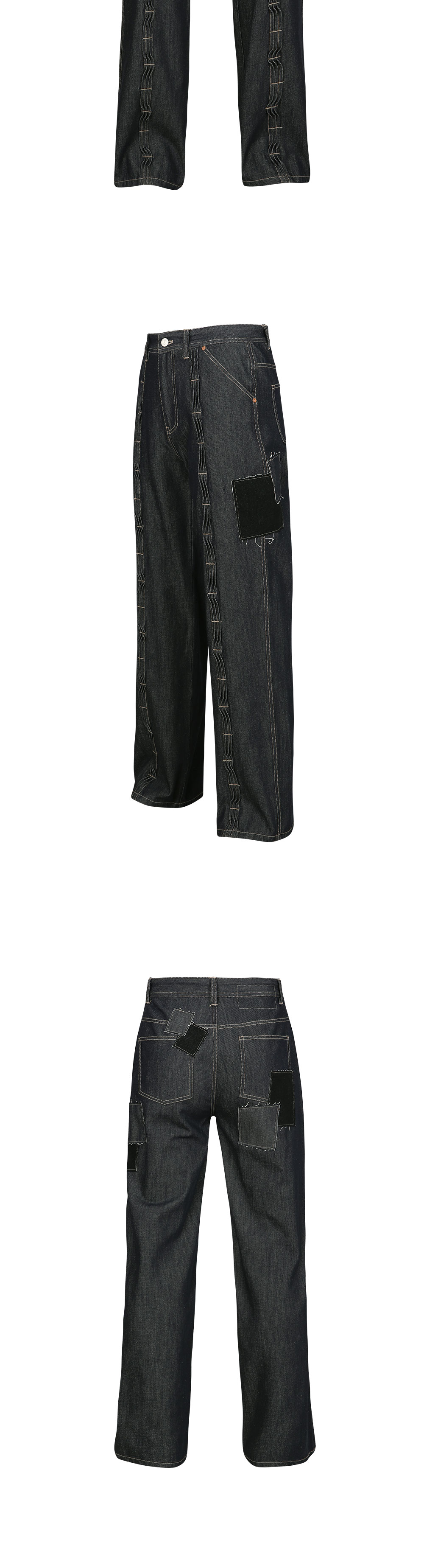 [KREAM 단독] ADSB 앤더슨벨 패치워크 웨이브 턱 와이드 레그 진 인디고