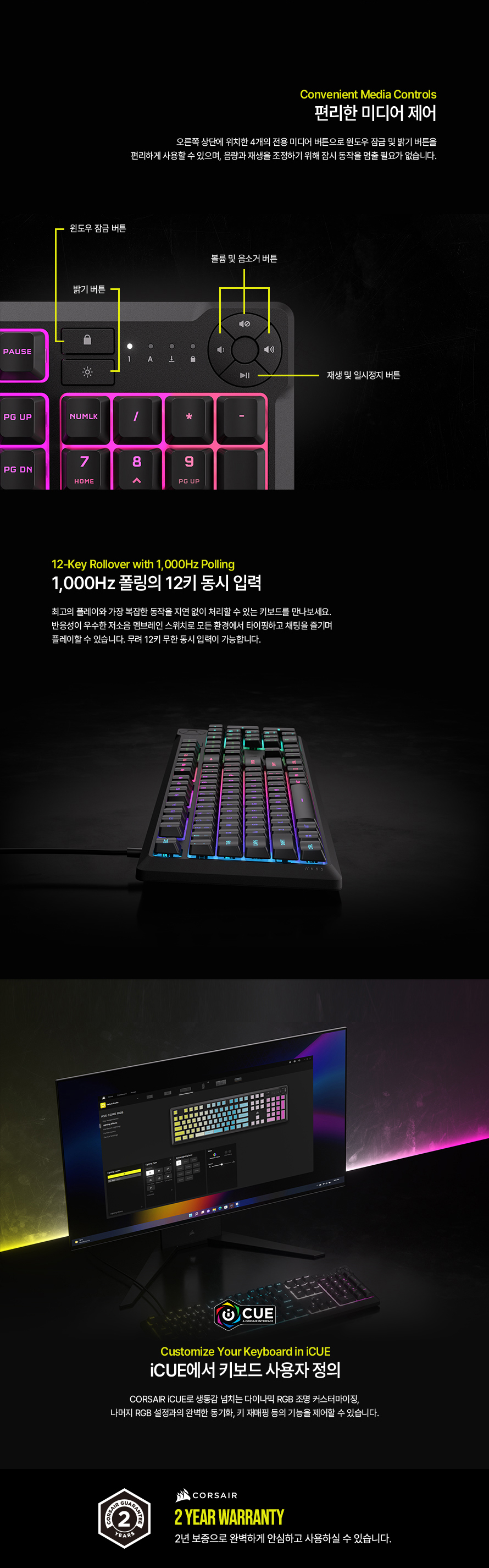 커세어 K55 코어 RGB 게이밍 키보드