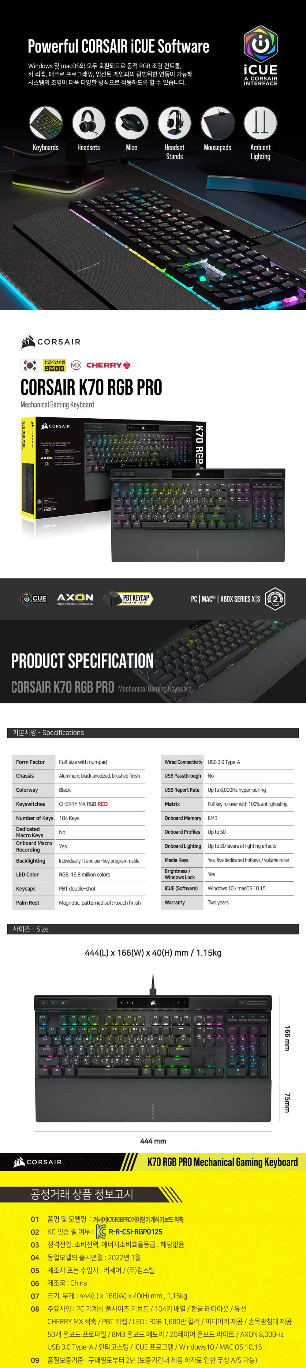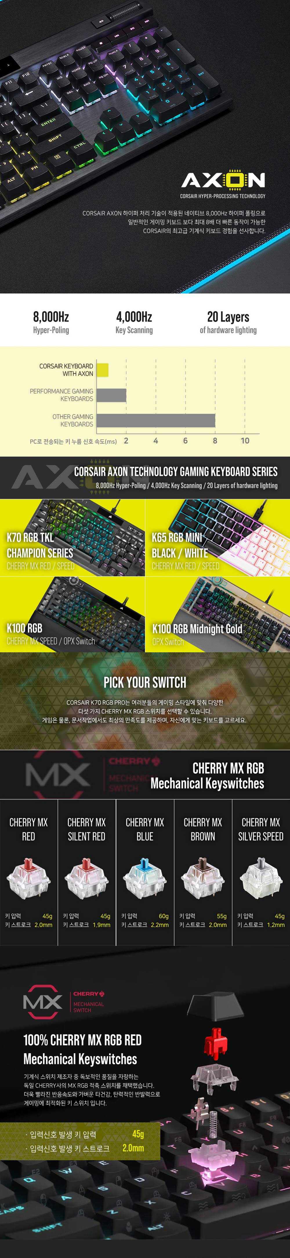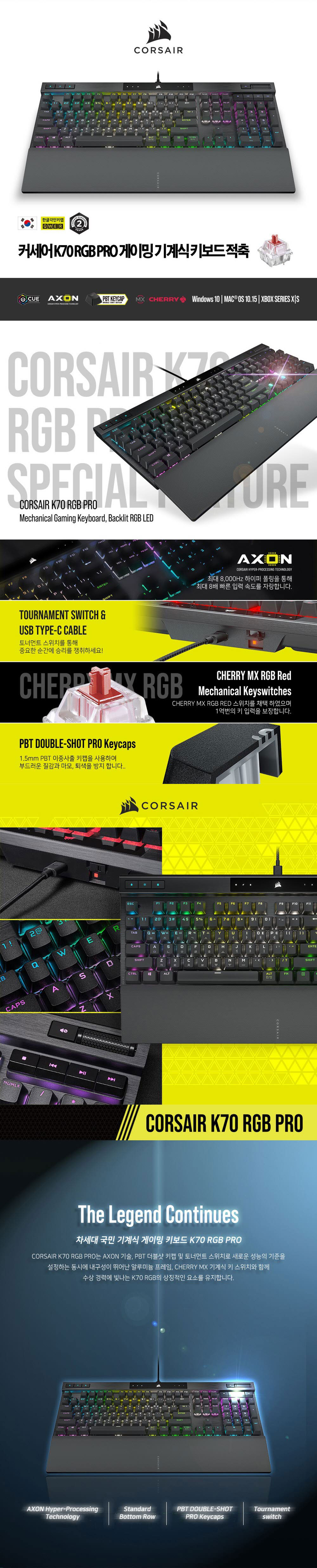 커세어 K70 RGB 프로 게이밍 기계식 적축 키보드
