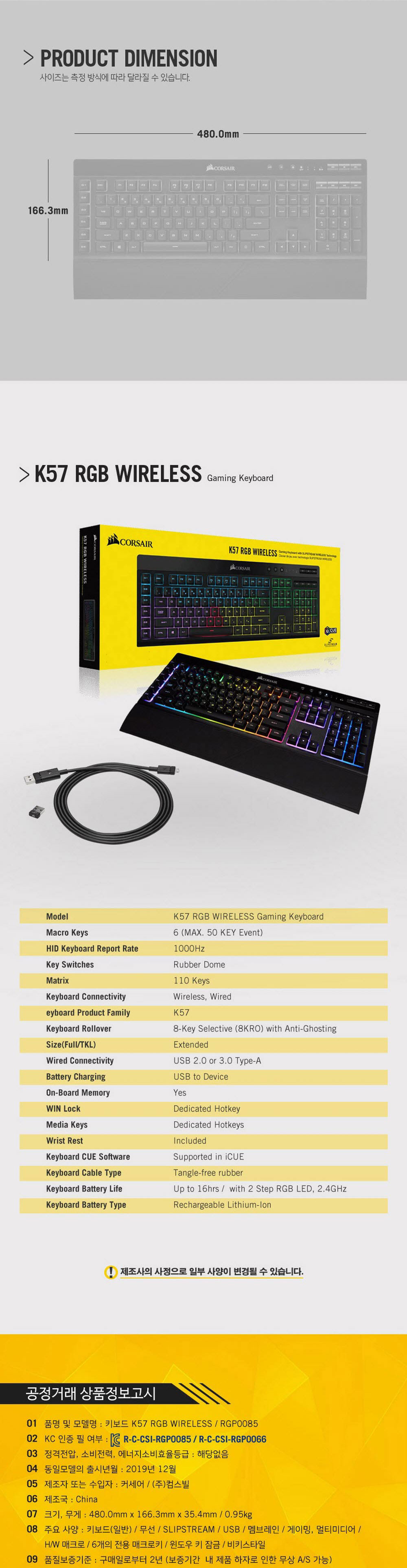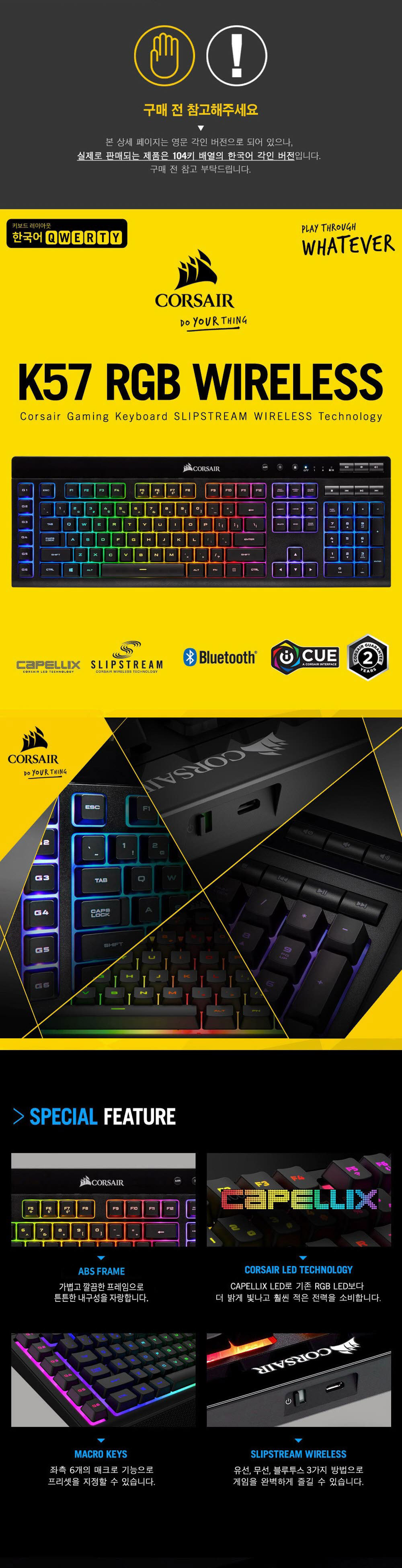커세어 K57 RGB 무선 블루투스 게이밍 키보드