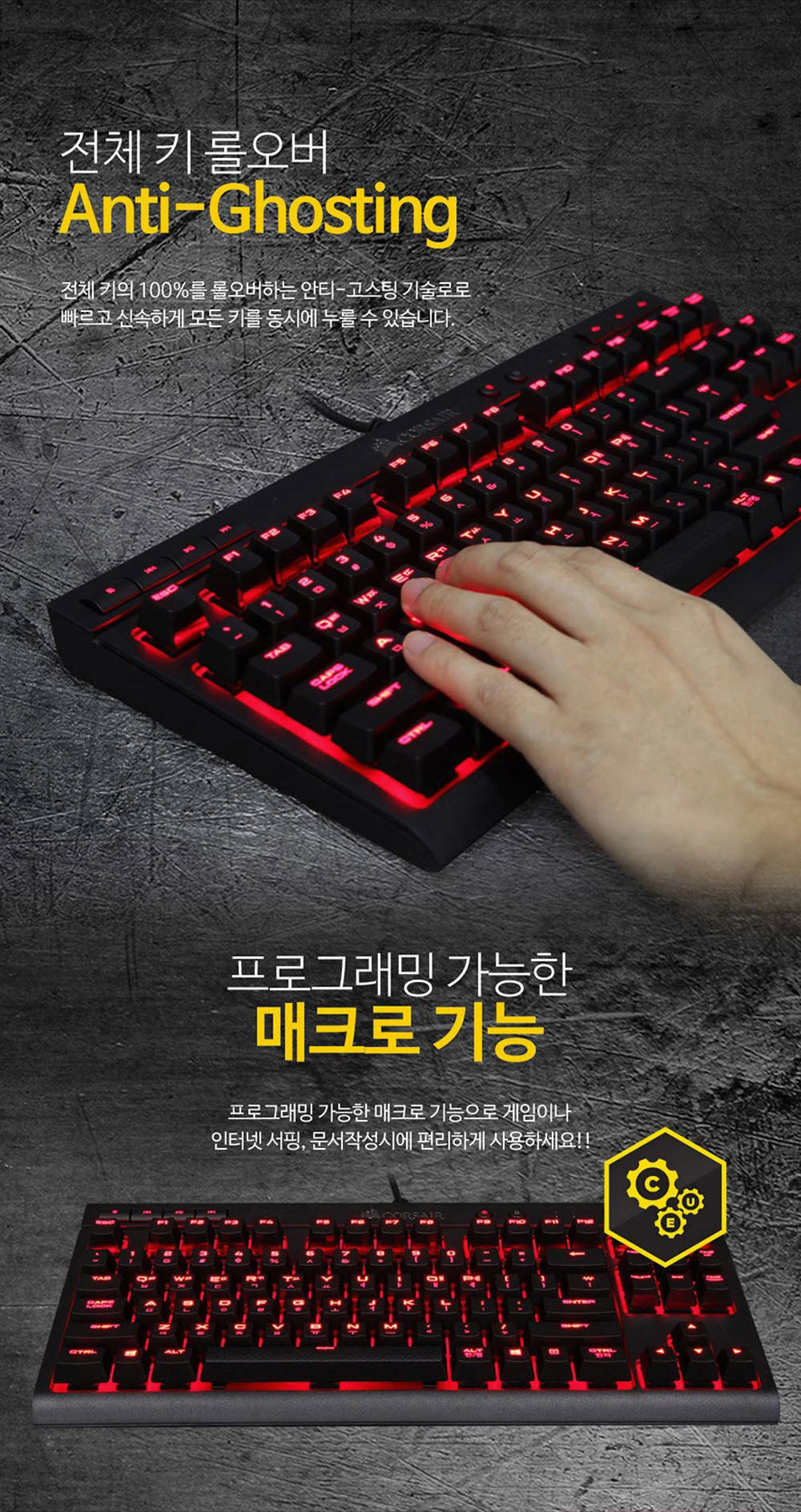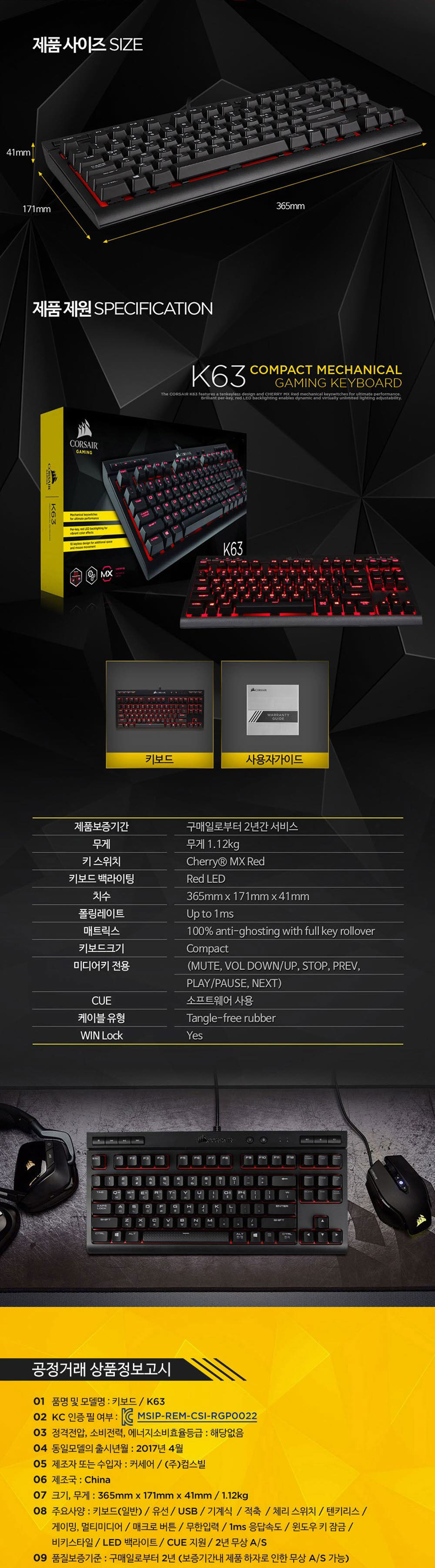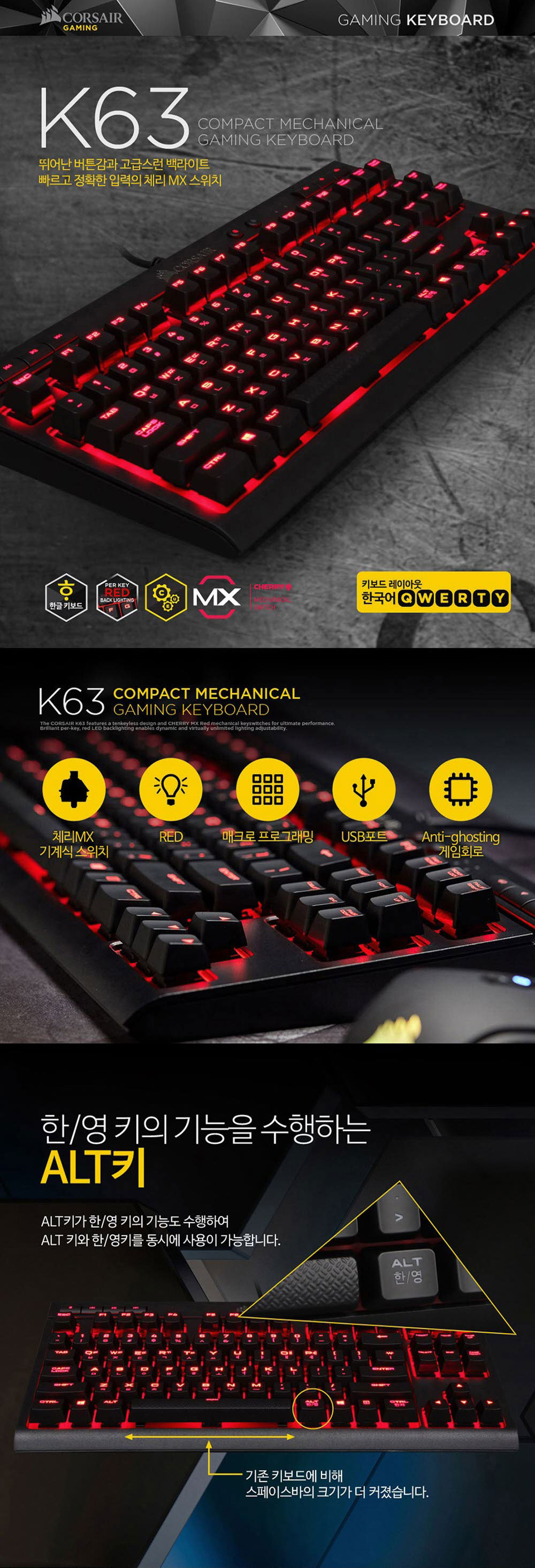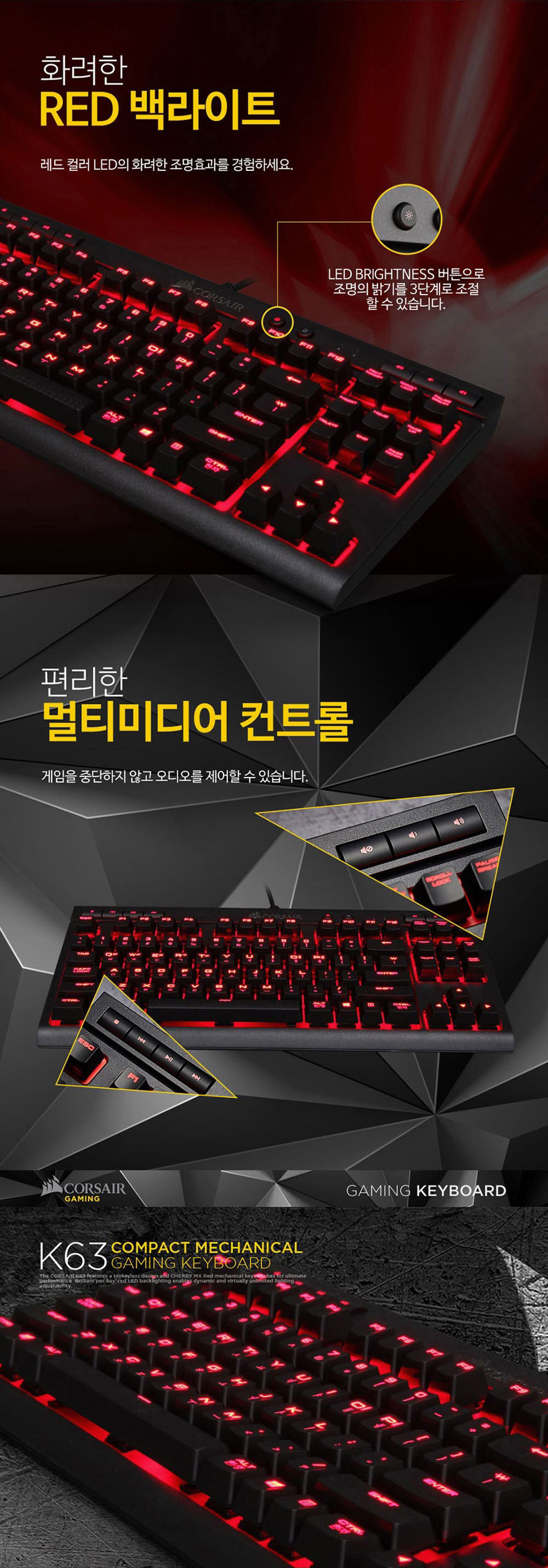 커세어 K63 텐키리스 게이밍 기계식 적축 키보드 레드 (한글)