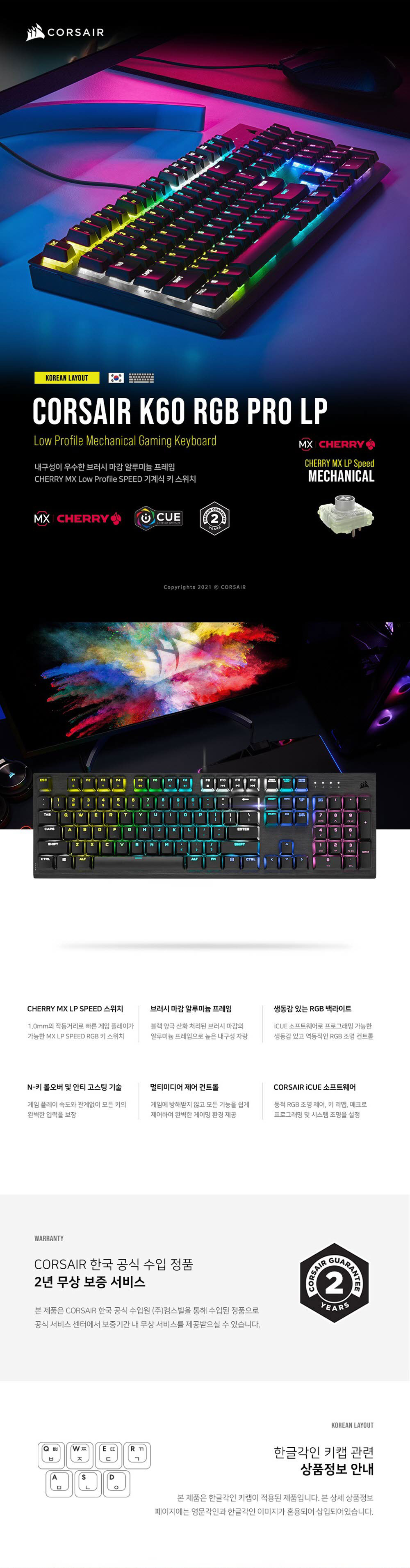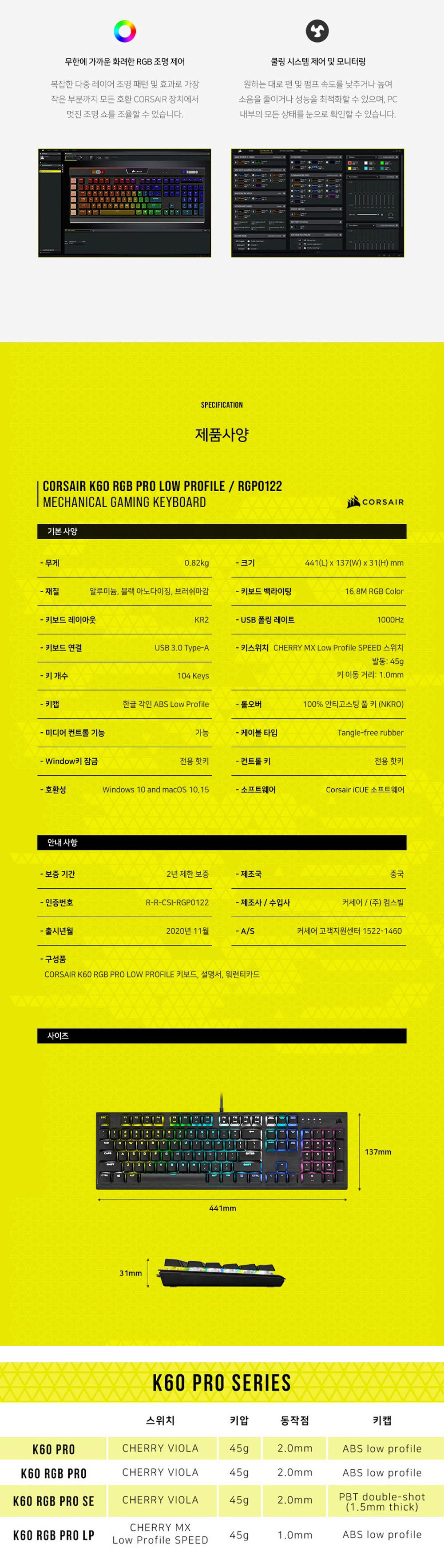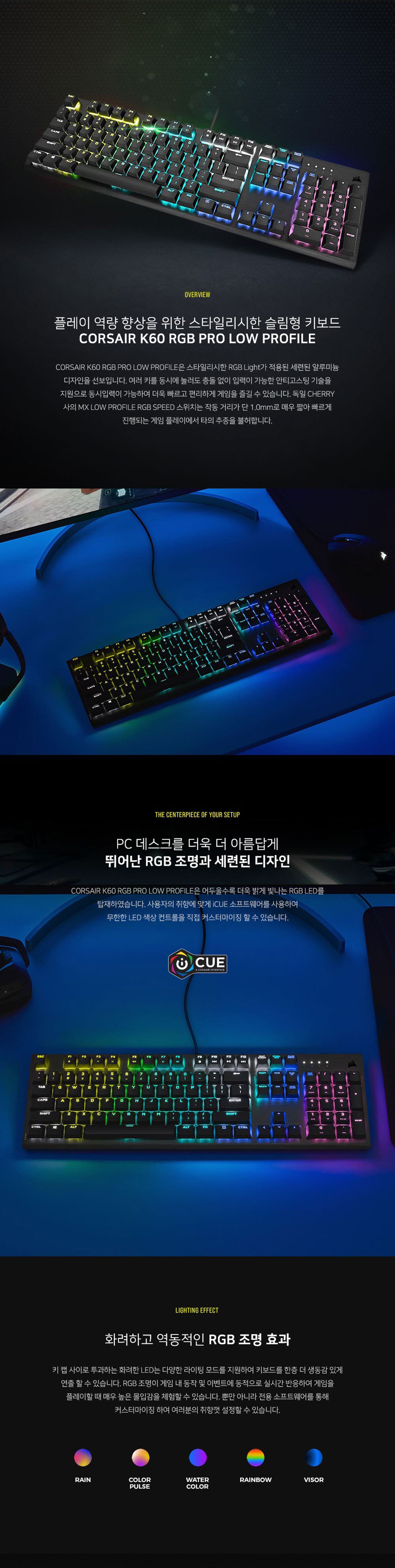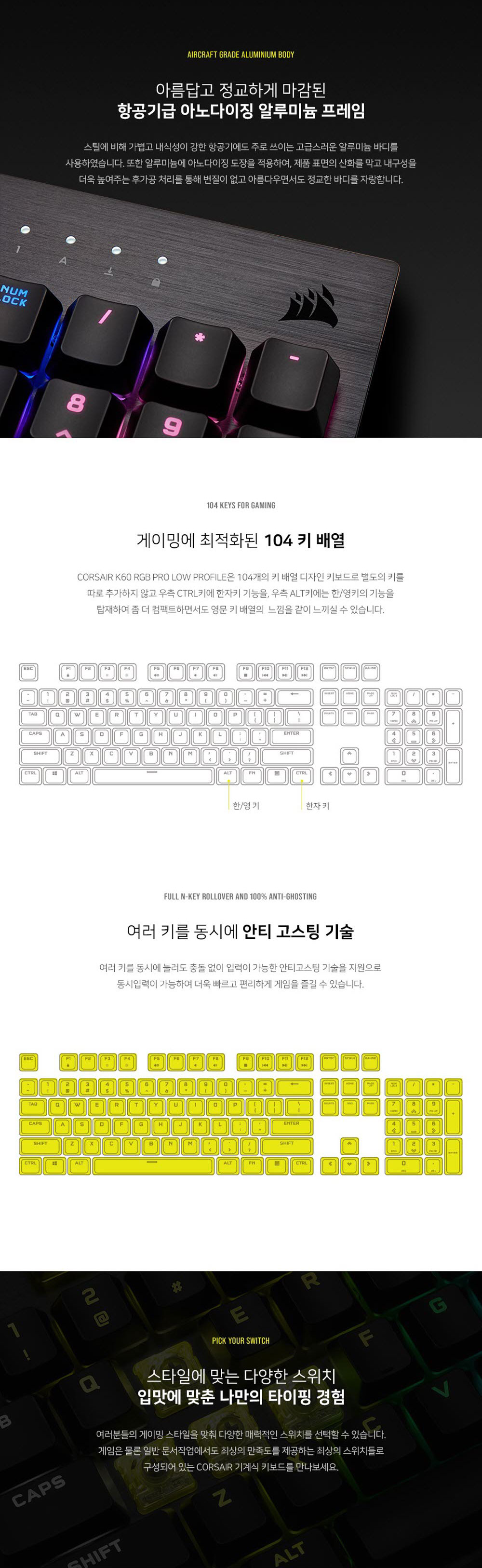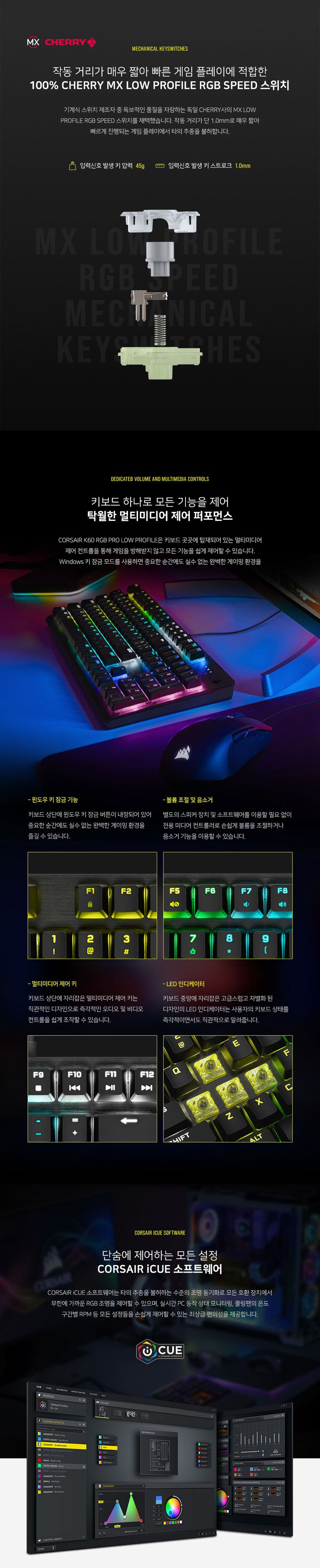 커세어 K60 PRO RGB 로우 프로파일 Rapid Fire 기계식 게이밍 키보드