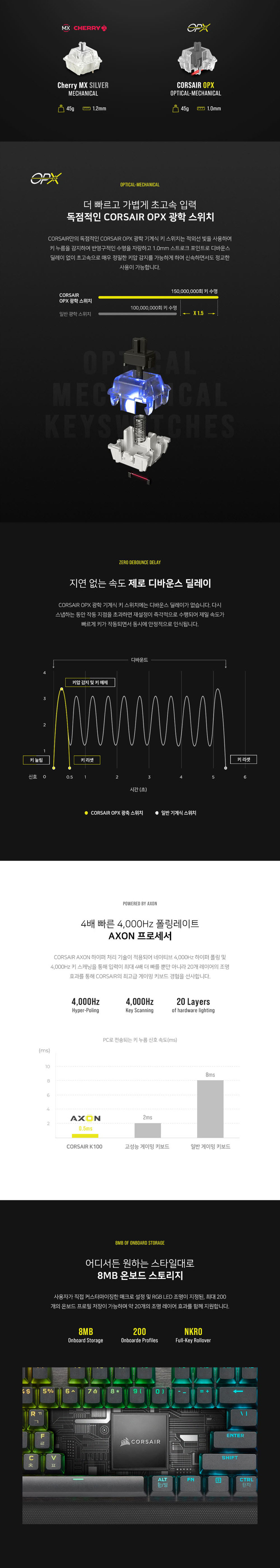 커세어 K100 RGB PBT 기계식 키보드 광적축 (한글자판)