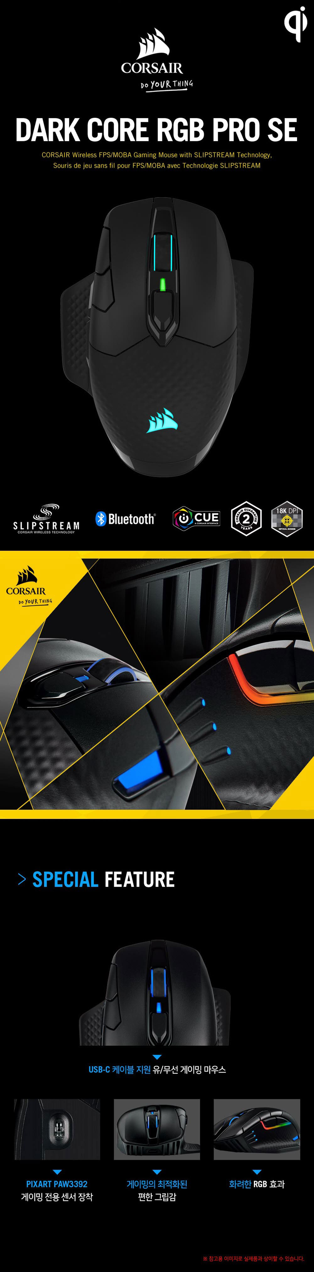 커세어 DARK CORE RGB PRO SE 무선 게이밍 마우스