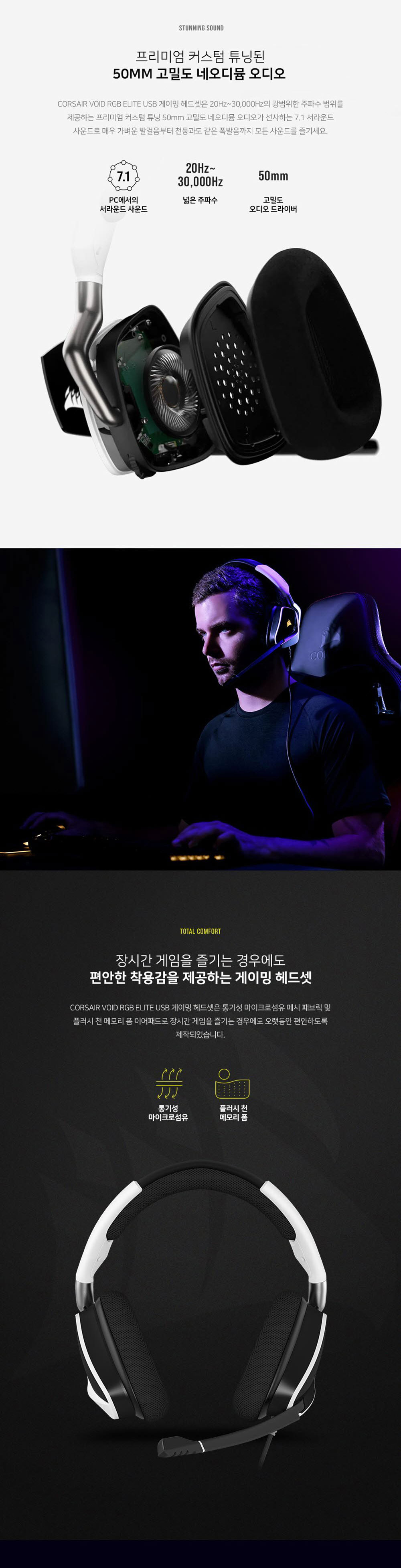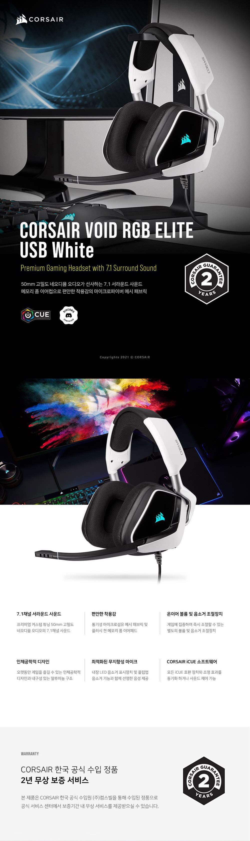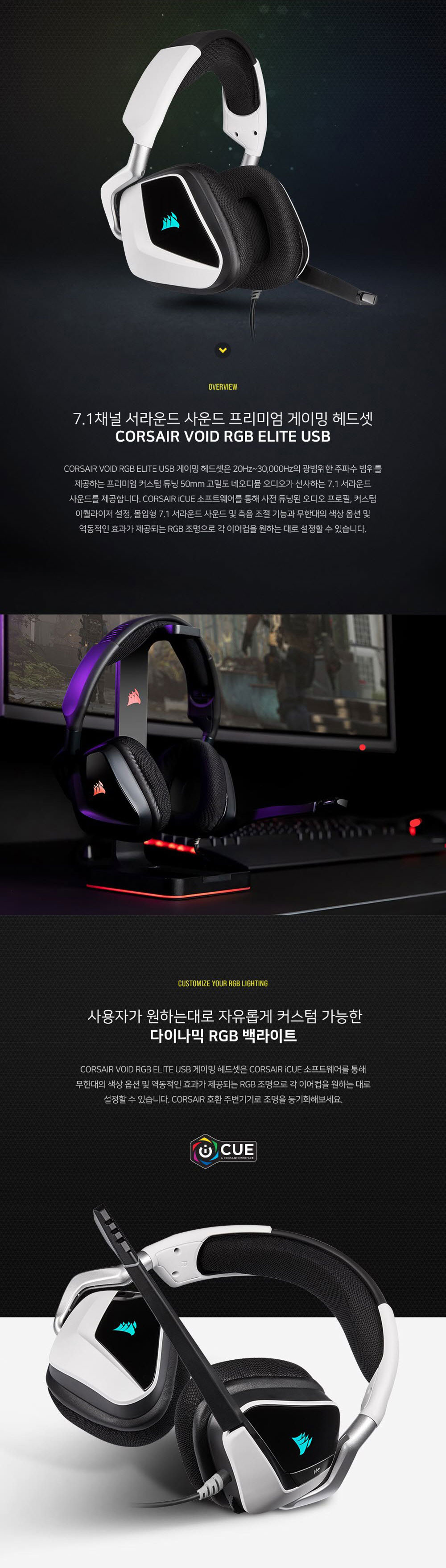 커세어 보이드 RGB 엘리트 USB 게이밍 헤드셋 화이트