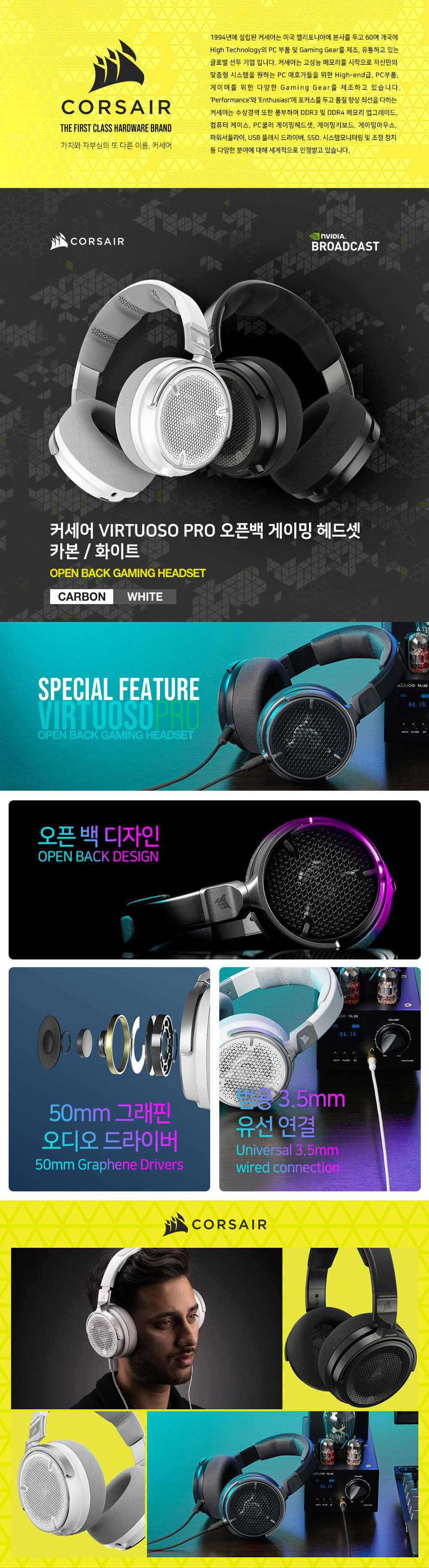 커세어 VIRTUOSO 프로 오픈백 게이밍 헤드셋 카본