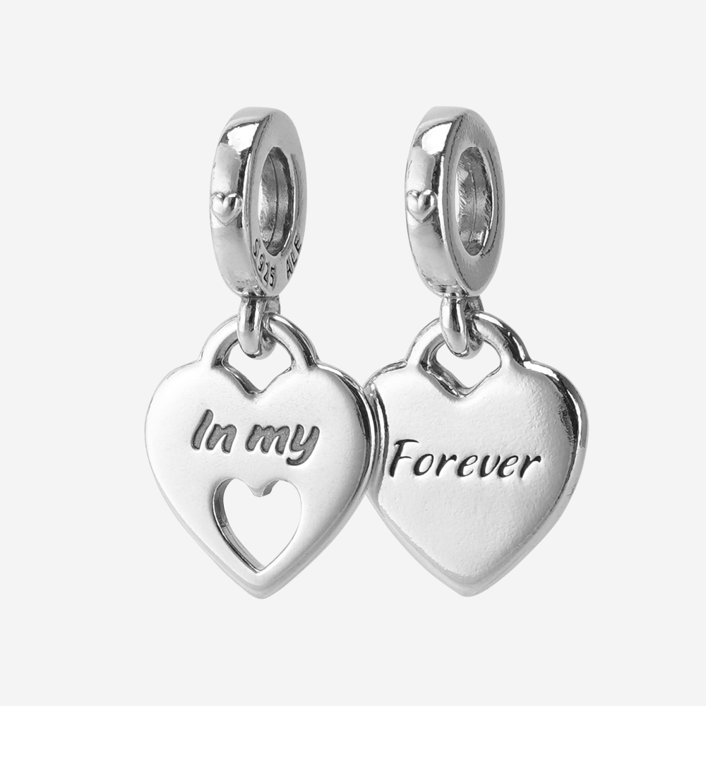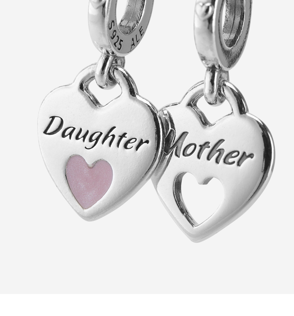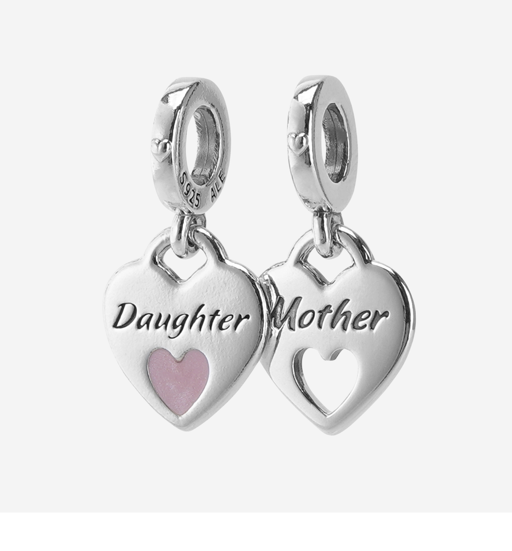 (W) 판도라 더블 하트 스플릿 댕글 참 스털링 실버 핑크