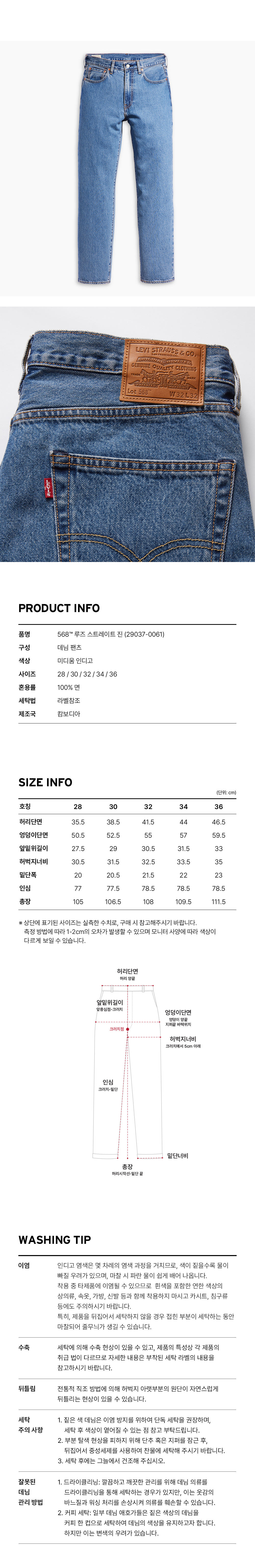 리바이스 568 루즈 스트레이트 진 미디엄 인디고
