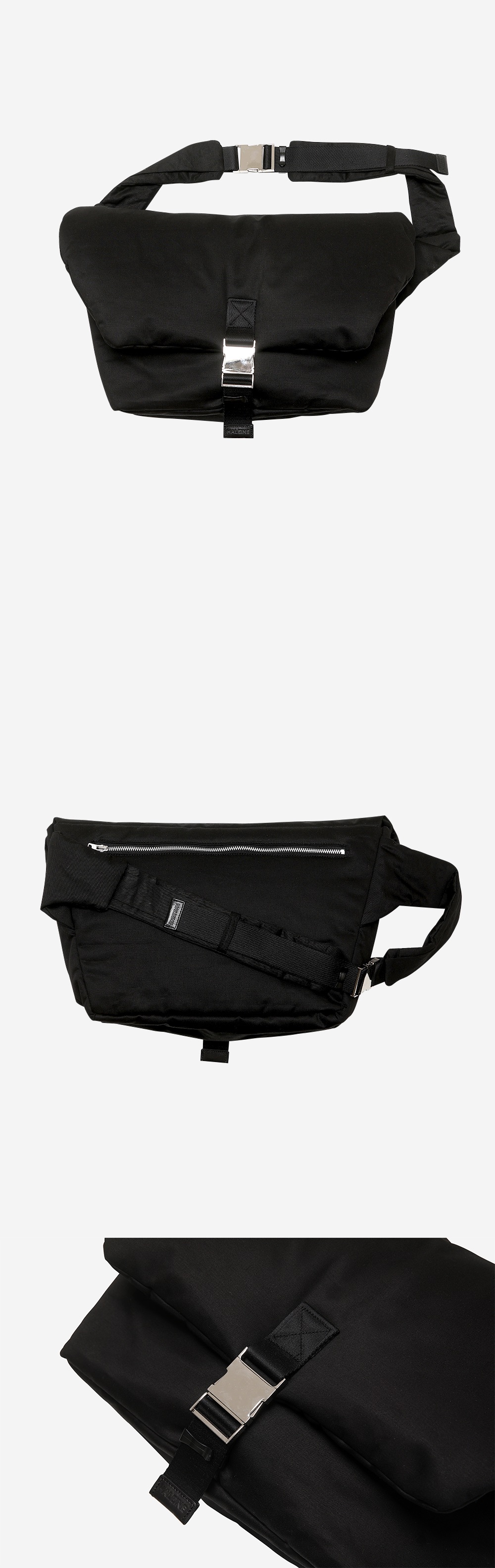 바이오 워시드 코튼 소재에 6온즈 본딩을 통해 패디드 제품 특유의 볼륨감을 연출한 크로스 백입니다. 크로스 및 슬링 2WAY로 연출이 가능하며, 내/외부 지퍼 포켓을 추가하여 실용성을 추가하였습니다.