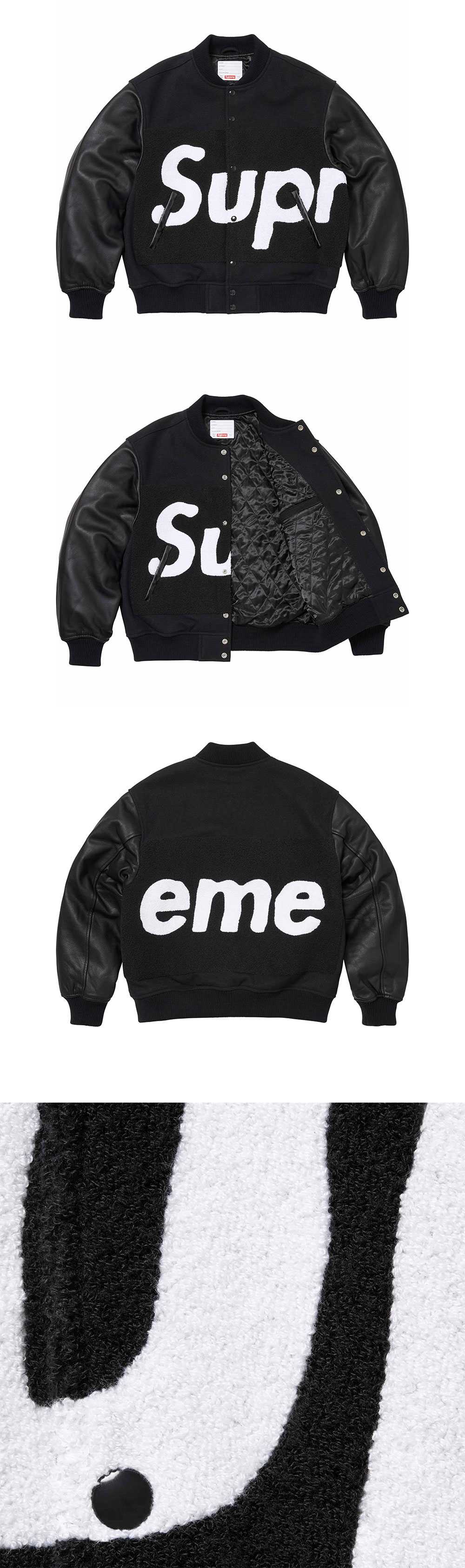 Supreme Big Logo Chenille Varsity Jacket Black - 24SS