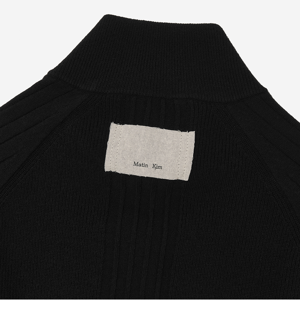(W) Matin Kim High Neck Sleeve Logo Knit Cardigan Black