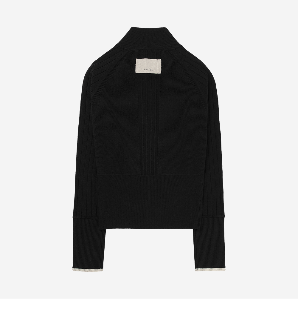 (W) 마뗑킴 하이 넥 슬리브 로고 니트 가디건 블랙