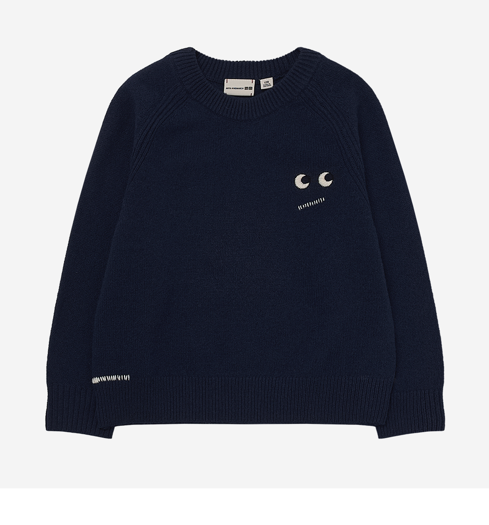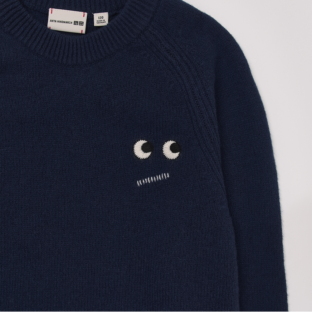 (Kids) Uniqlo x Anya Hindmarch Premium Lambswool Long Sleeve Crew Neck Sweater Blue - KR