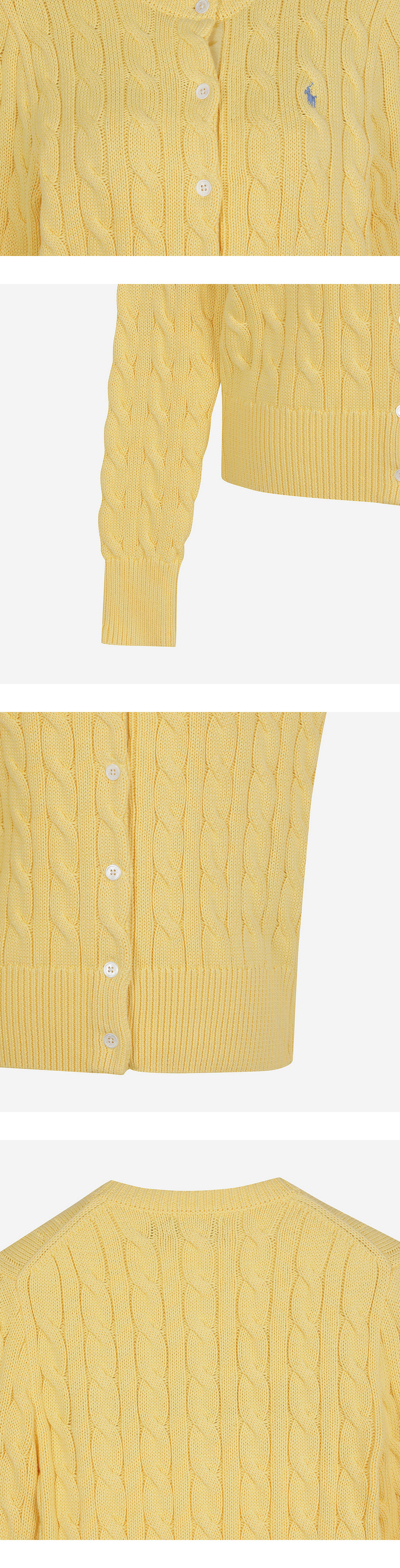 [30%적립] 폴로 랄프 로렌 우먼 케이블 니트 코튼 크루넥 카디건 옐로우