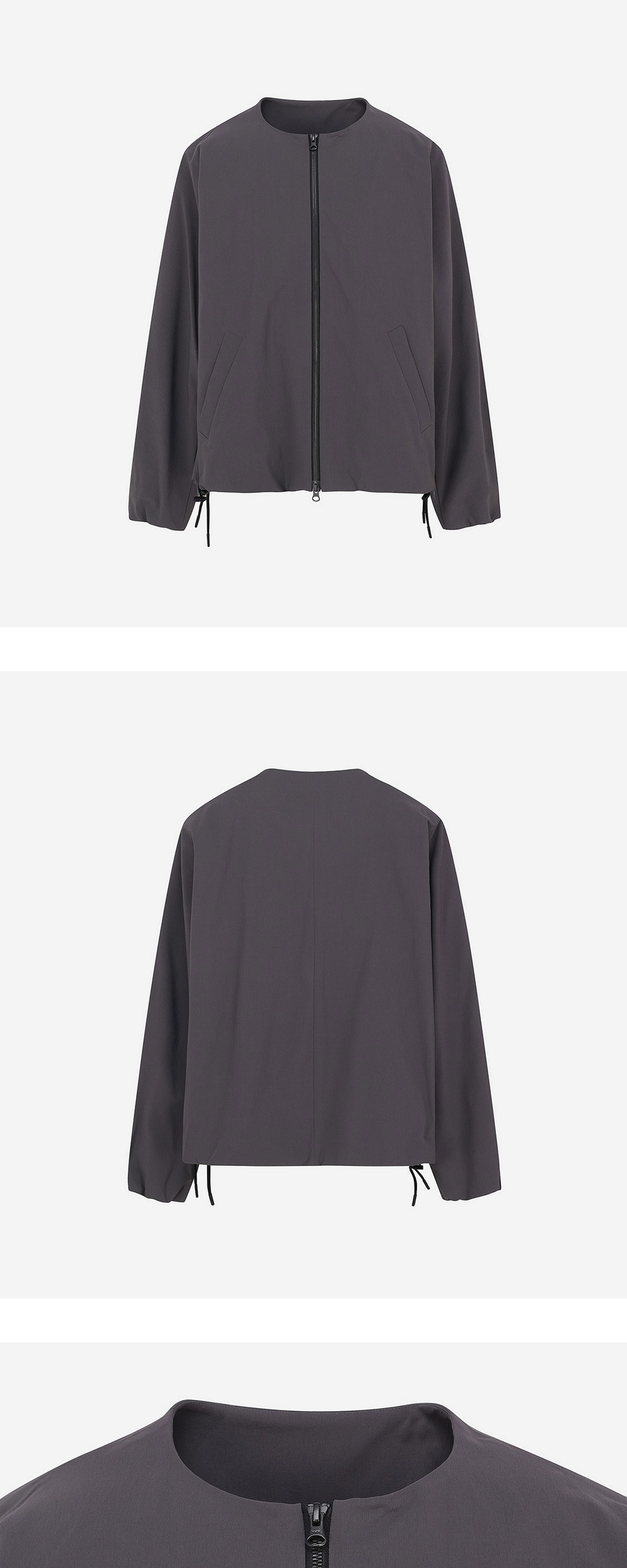 후미토 간류 벤틸레이션 노 카라 자켓 차콜 그레이
