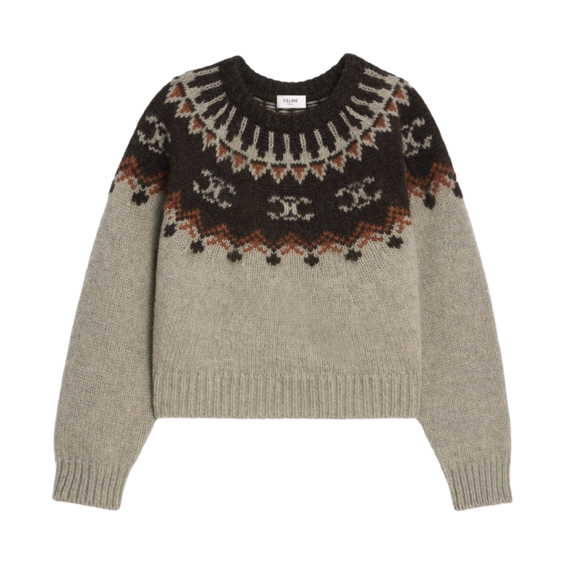 (W) Celine Crew Neck Sweater in Triomphe Fair Isle Wool Medium Grey