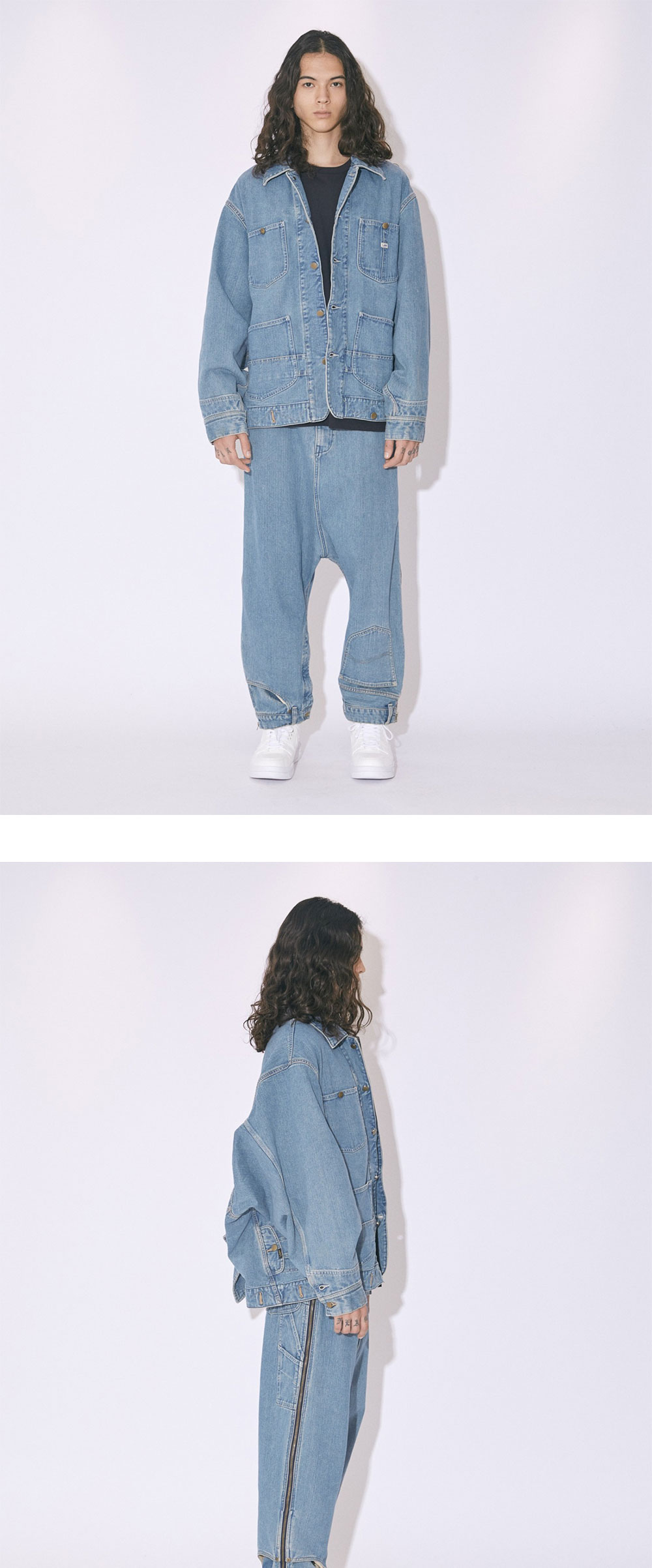 Beautiful People과 Lee가 첫 콜라보레이션으로 선보이는 투웨이 데님 블루종입니다. Lee의 대표작인 라이더 자켓과 워크 자켓을 한 벌로 즐길 수 있는 유니크한 아이템입니다. - 착용 방향에 따라 디자인이 변화하는 투웨이 데님 블루종 - 볼륨감 있는 디자인의 데님 블루종 - 밑단이 둥글게 처리된 독특한 패턴 - 옆선을 앞 요크로, 앞단을 앞자락으로 회전하여 착용할 수 있는 구조 - 여러 개의 포켓과 트리플 스티치 * 모델 신체 스펙 - 186cm / 착용 사이즈 42
