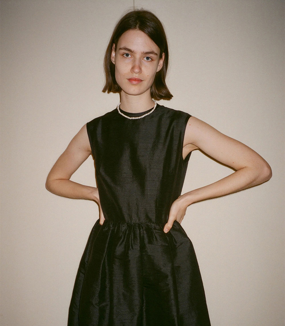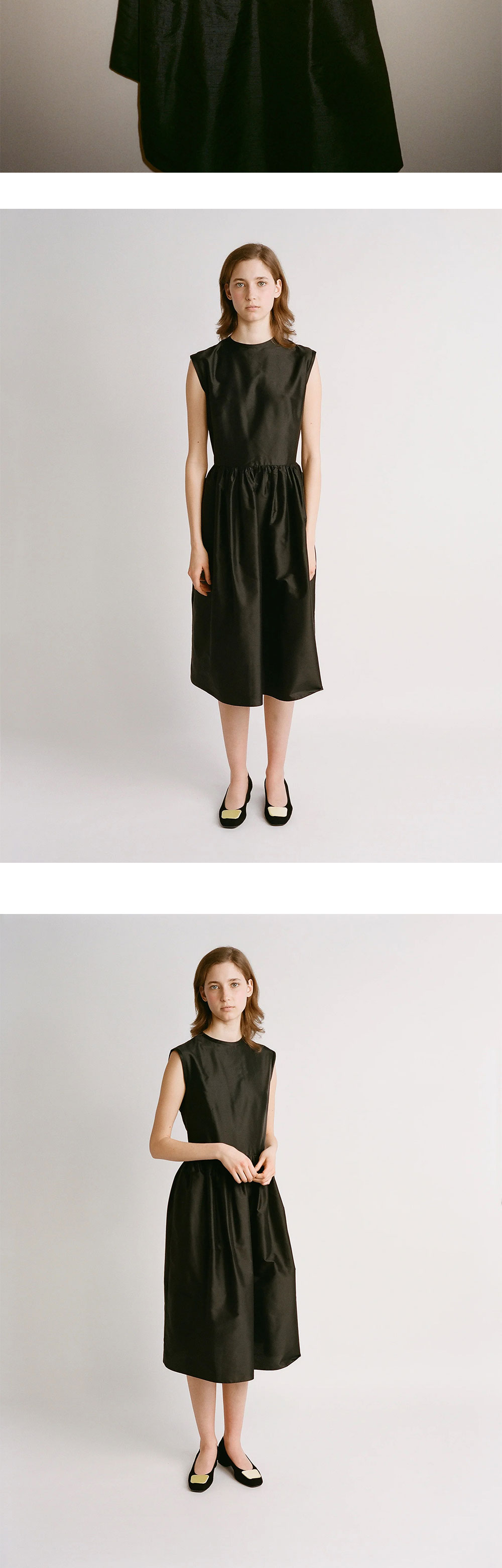 블랙 컬러의 하이 우먼 엘리자베스 드레스는 약간 캡된 슬리브리스 숄더와 허리를 모은 미디길이의 스커트가 특징입니다. 두 종류의 실을 결합하여 만들어진 패브릭의 특성으로 인해 일반적인 새틴 실크와 비교해 질감이 돋보이는 제품입니다. - 100% 듀피온 실크 - 지퍼 잠금장치 *모델 신체 스펙 - 175cm / 착용 사이즈 - S