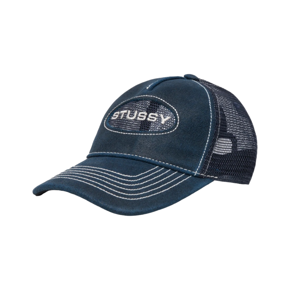 Stussy Low Pro Trucker Cut-Out Leather Snapback Navy