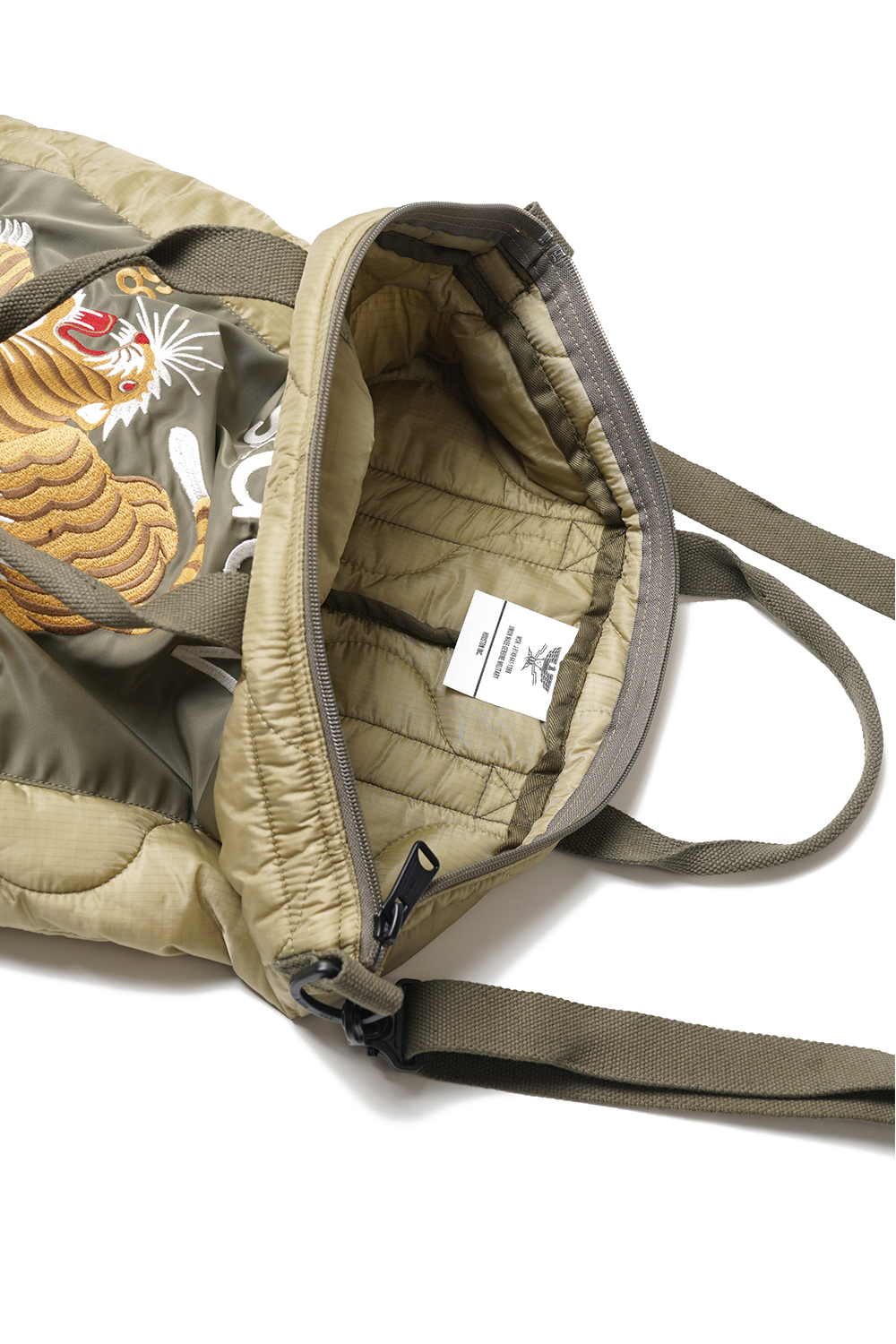 Houston Japan 6842 EMB Quilting Helmet Bag (Tiger) - Olive Drab 초기형 핼맷백 모델을 베이스로 제작된 나일론 퀼팅 핼맷백입니다. 어깨의 스트랩이 탈부착 가능한 2way 사양이며, 헤비 나일론 원단으로 제작된 볼륨감이 있는 퀼트의 전면에는 빈티지스로운 분위기의 타이거 자수가 디자인되어 있습니다.