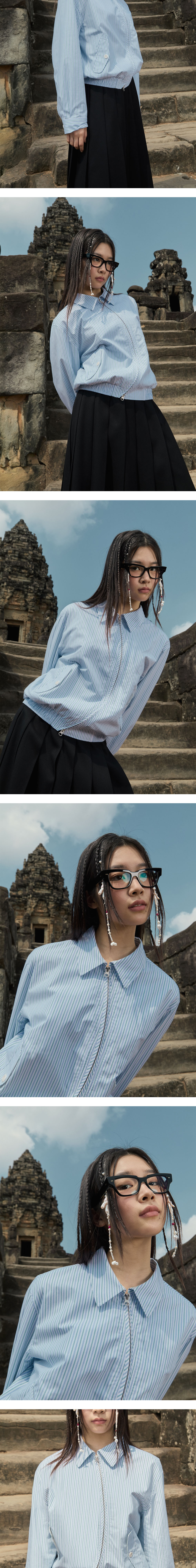 에스티유 우먼즈 스트라이프 라운드 자켓 블루