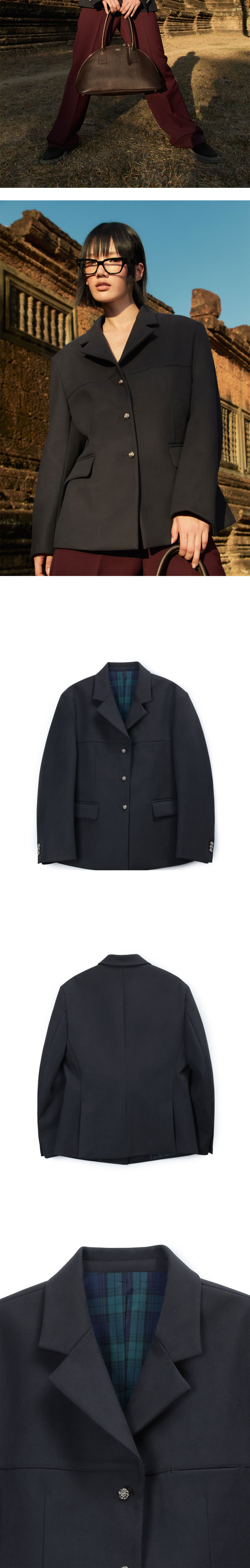 에스티유 우먼즈 3버튼 블레이져 네이비