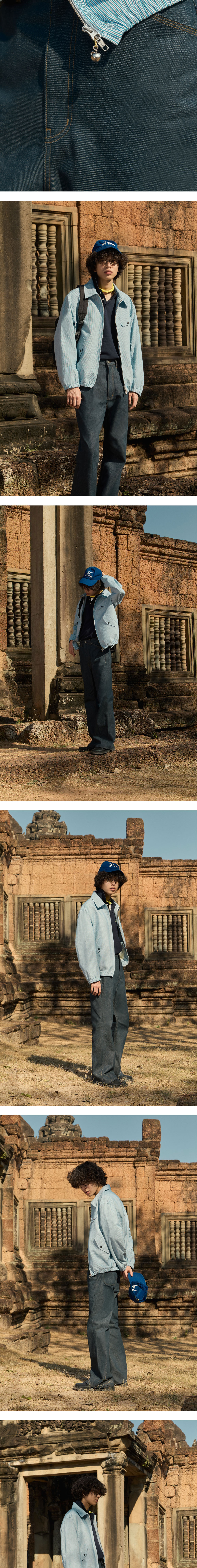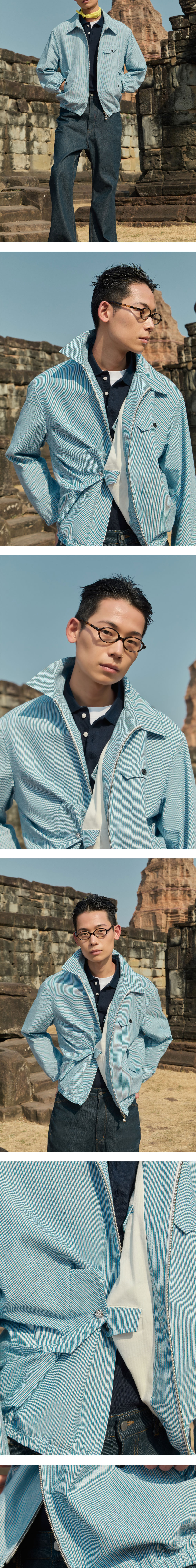 에스티유 스트라이프 밴딩 자켓 블루 + 애플 슬라이더