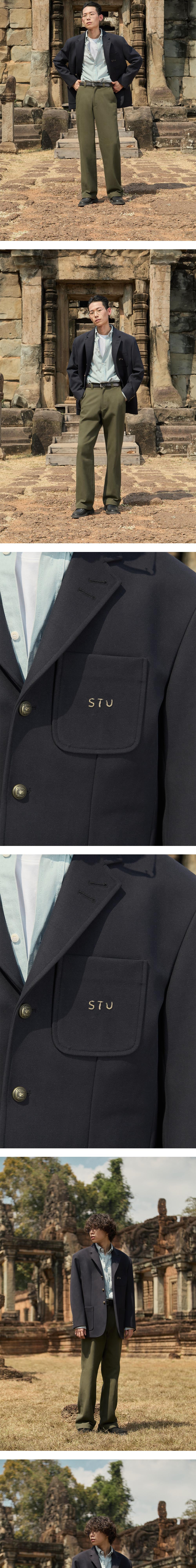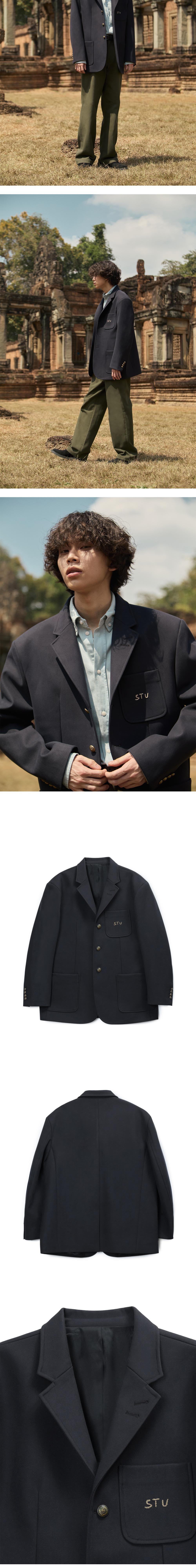STU 3 Button Wool Hand Stitch Blazer Navy