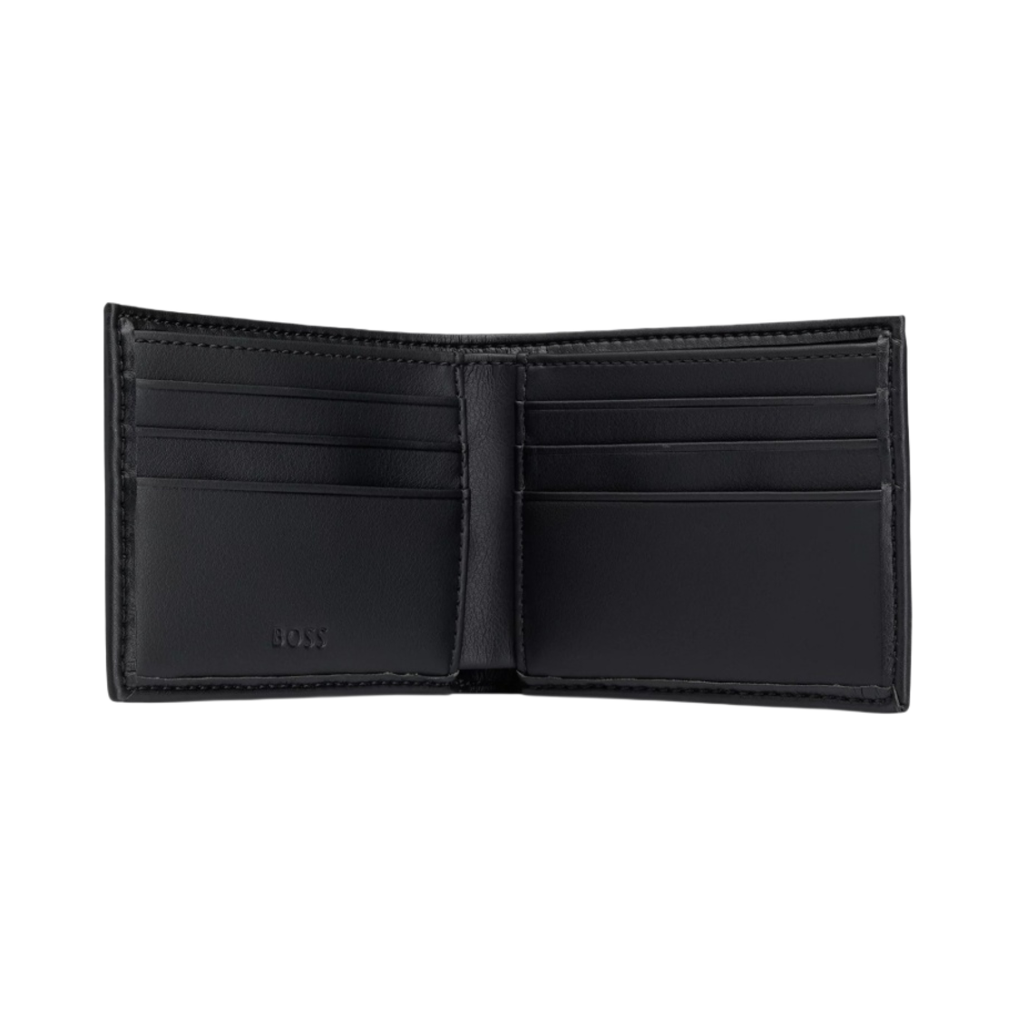 휴고 보스 시그니처 스트라이프 디테일 포우 레더 월렛 블랙