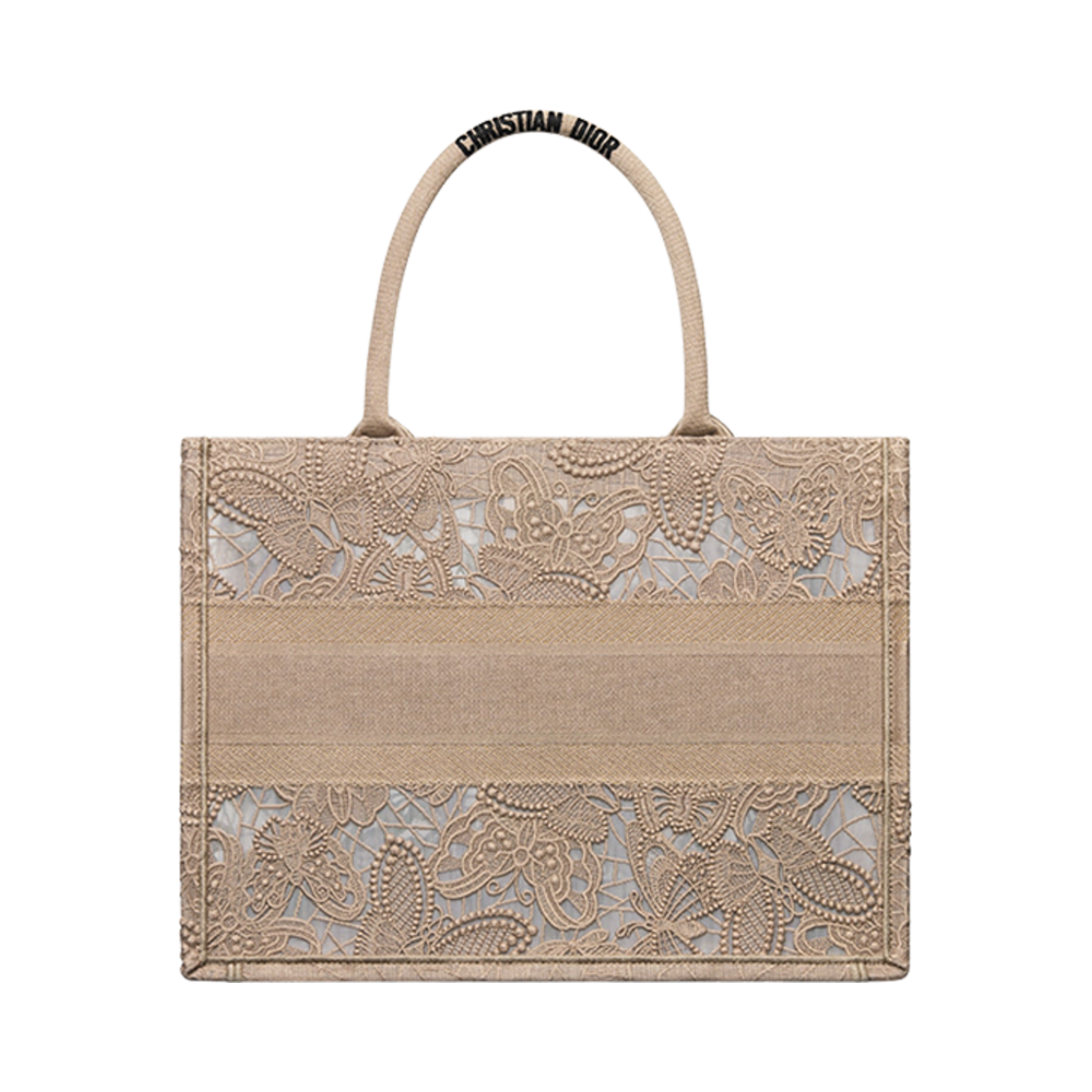 Dior Medium Book Tote D Lace Butterfly with Macrame Effect Beige