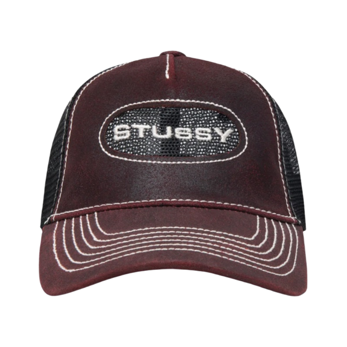 Stussy Low Pro Trucker Cut-Out Leather Snapback Wine