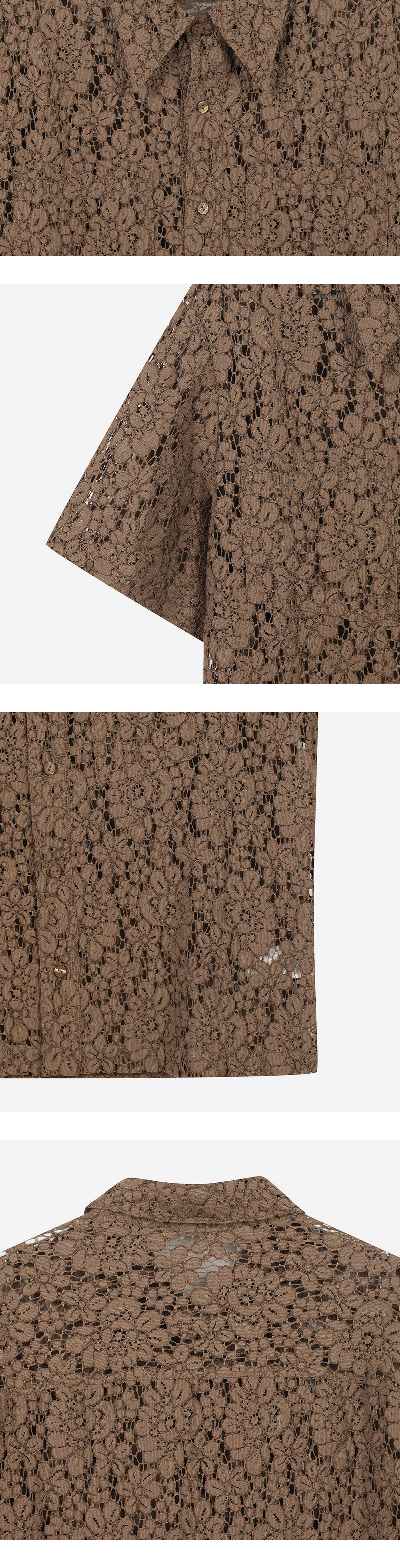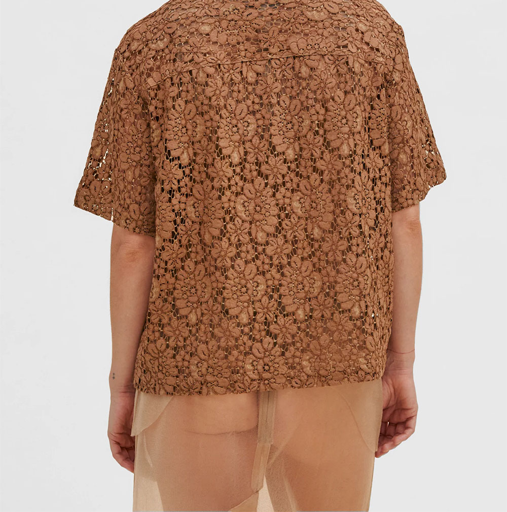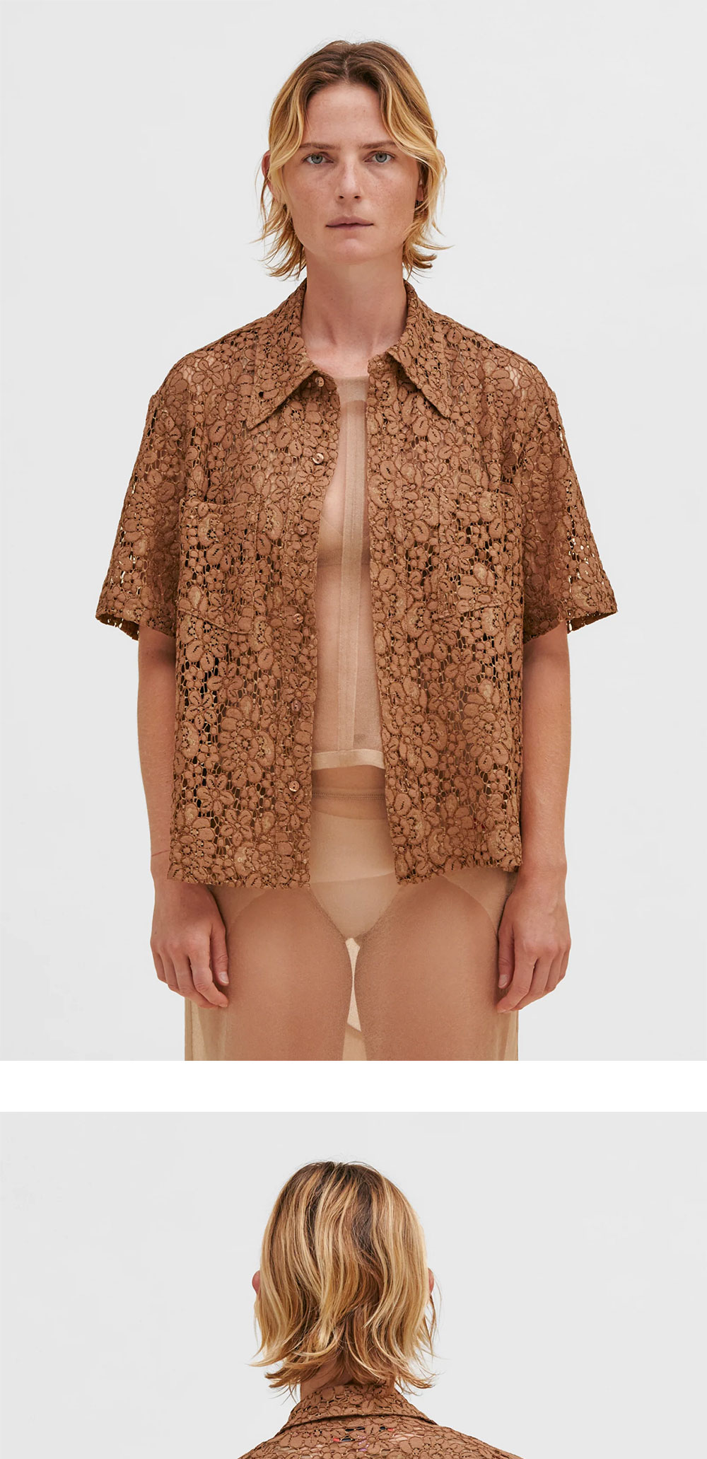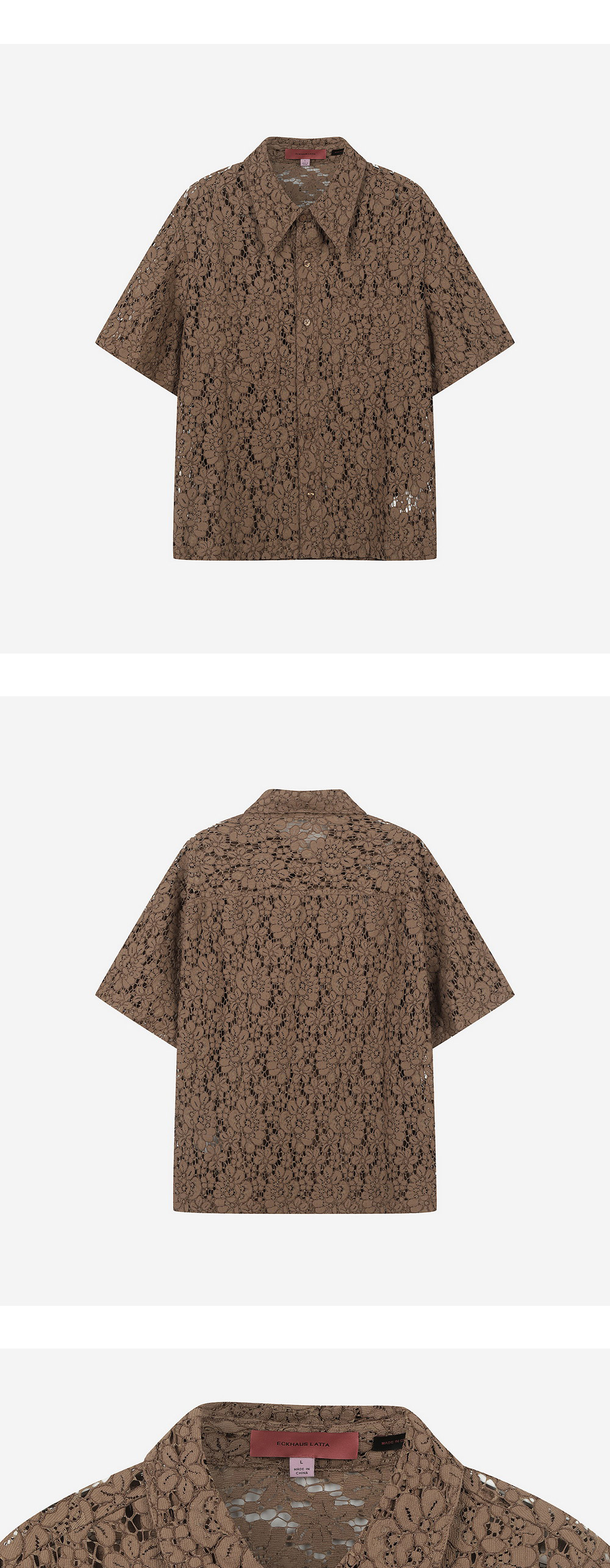 에크하우스 라타의 이탈리안 플로럴 레이스 박시핏 반소매 버튼다운입니다. - 과장된 칼라 포인트 - 가슴 부분에 두 개의 패치 포켓 디테일